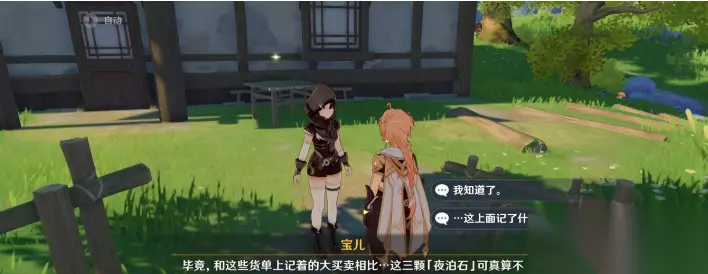 到达位置后可以看到一个NPC宝儿,与她进行对话,提示需要收集三个夜泊石。