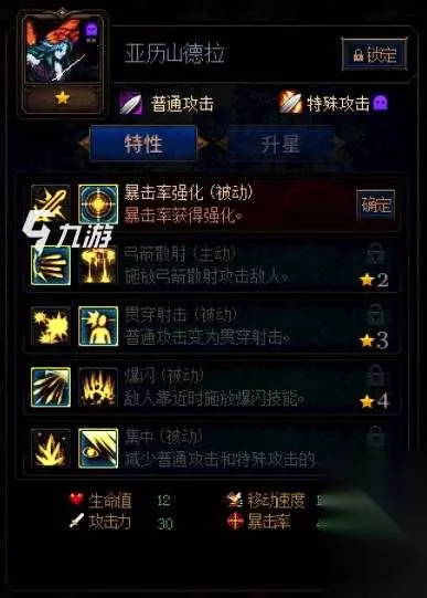 精灵 亚历山德拉尽管比较脆,不过输出爆炸,4星爆闪有一定保命能力,可以说是后期强力输出卡,建议核心培养,优先升5星。加点上,建议选择暴击率强化/攻击力强化、弓箭散射、贯穿射击、爆闪、集中,5星技能不要选封印剑。