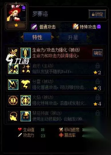 罗赛洛作为辅助神卡,有着很强的辅助能力,4星输出可观,加点上建议选择生命力/攻击力强化、启示、分雷、火焰、禁忌预言。