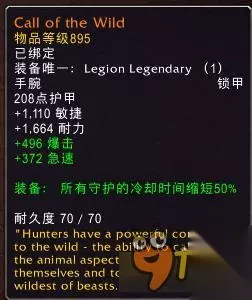 所有守护的CD缩短50% 兽王大爆发技能野性守护受该橙装加成。使得灵龟守护(即只有一层的威慑)、猎豹守护、野性守护CD减半,从DPS角度而言,野性守护CD减半对兽王的输出是一个不小的提升,而其他两种技能也使得兽王在战斗中可以更加灵活地使用自己的减伤和加速,很可能特别适合一些特殊的需要频繁开启灵龟和猎豹的开荒场合。(生存猎人雄鹰守护同样受加成,见生存系)