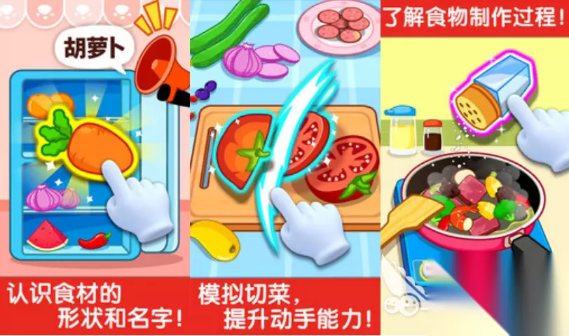 宝宝生活安全和知识的百科全书类游戏,涵盖全方面的技能知识。从消防,学习,儿歌童谣等领域,都设置了寓教于乐的方式灌输给宝宝们。可爱绘制的动物,拟人对话的形式和宝宝们沟通,引导学习深入应用。 高速下载 普通下载 优先233乐园APP下载 6.《宝宝小厨房》