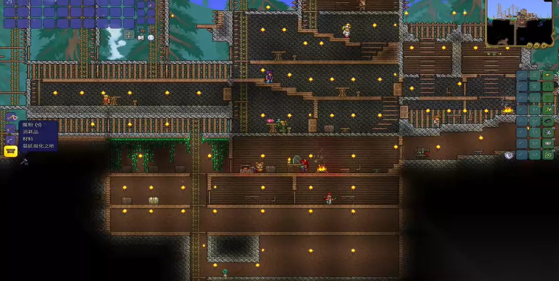 当玩家需要一片腐化或猩红环境来刷取特定的怪物掉落物,例如黑暗之魂时,恶魔粉末就成了最直接的工具。玩家可以在地下深处清理出一片空间,铺上腐化石块或撒上恶魔粉末来快速制造出符合要求的刷怪场地,从而高效地收集那些只有在特定生态环境下才会产出的稀有材料。在游戏进入困难模式后,会出现像环境改造枪这样更高效的地形改造工具,但恶魔粉末因其制作简单、材料易得,在整个游戏进程中始终保持着很高的实用性和性价比。