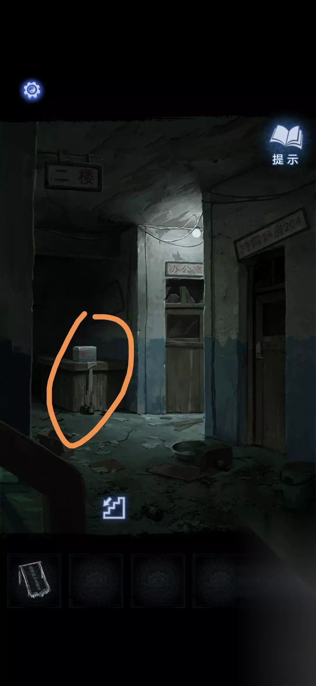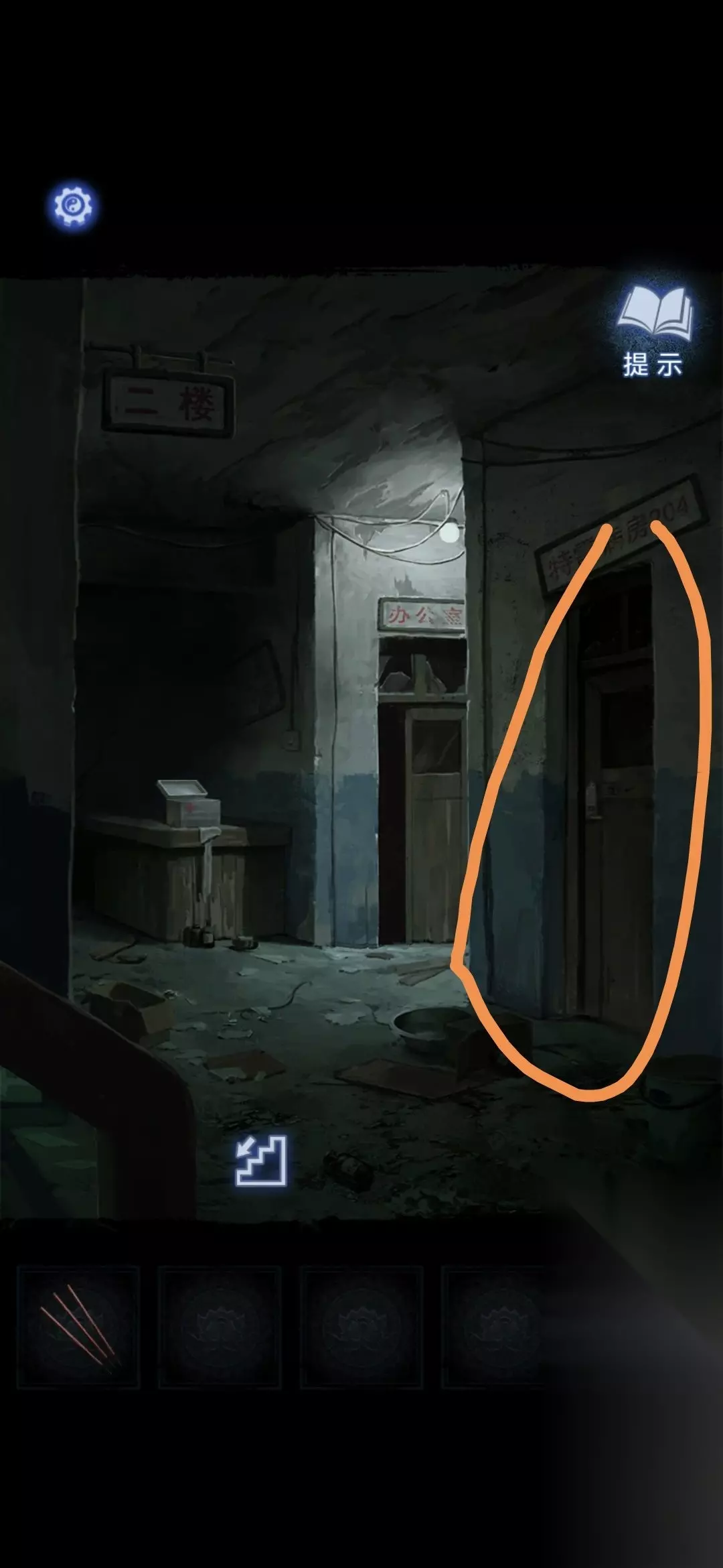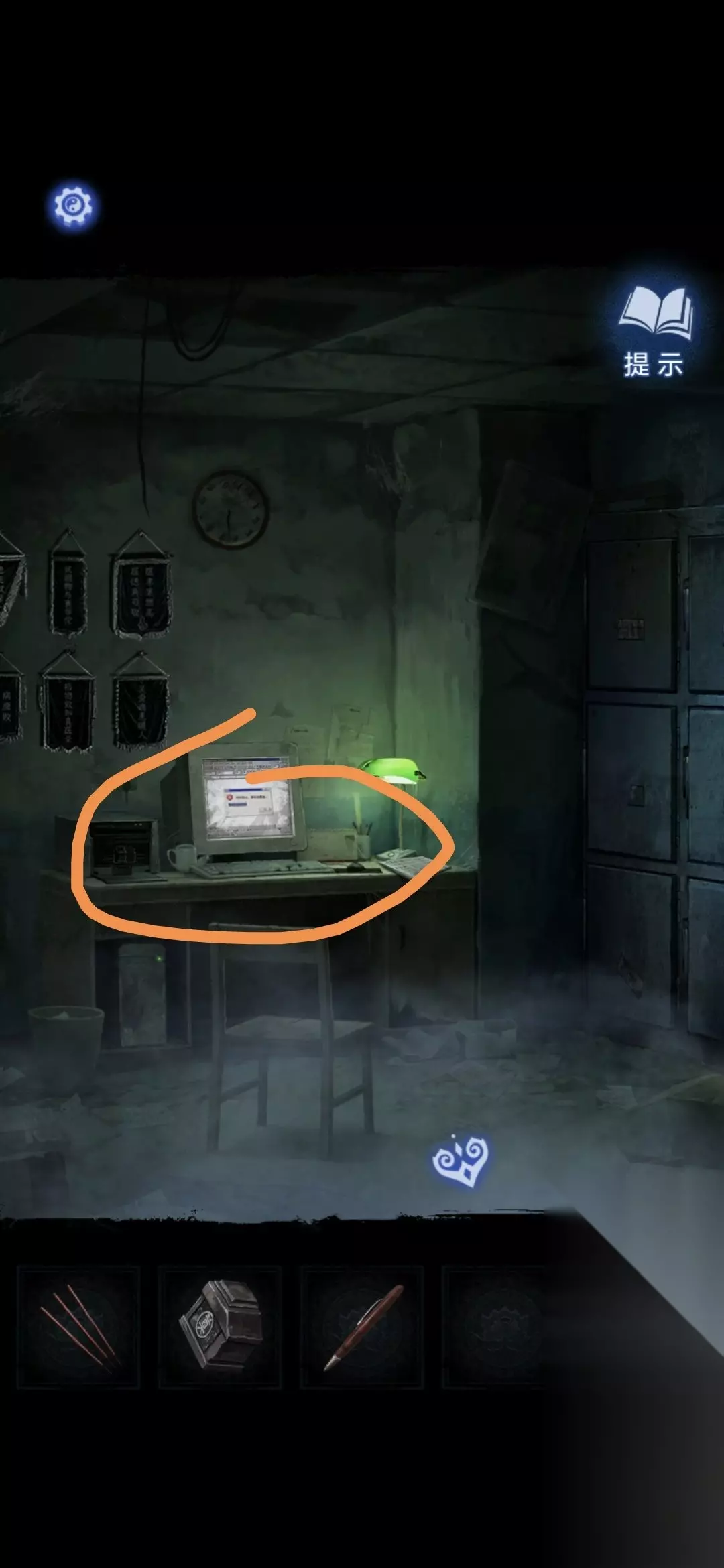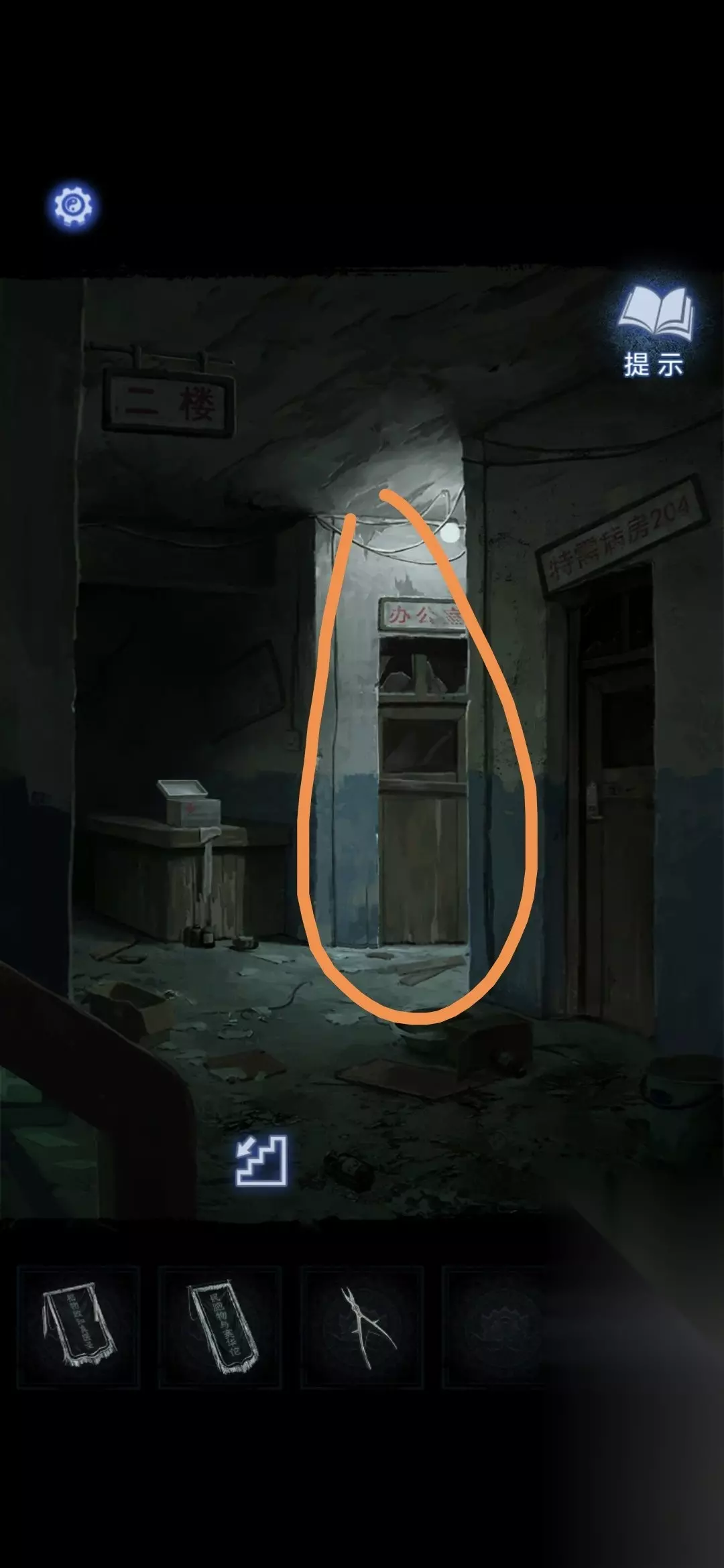 进入办公室,点击墙面,将锦旗挂在墙上,根据台灯下的资料排列锦旗顺序,打开停尸柜,获得香