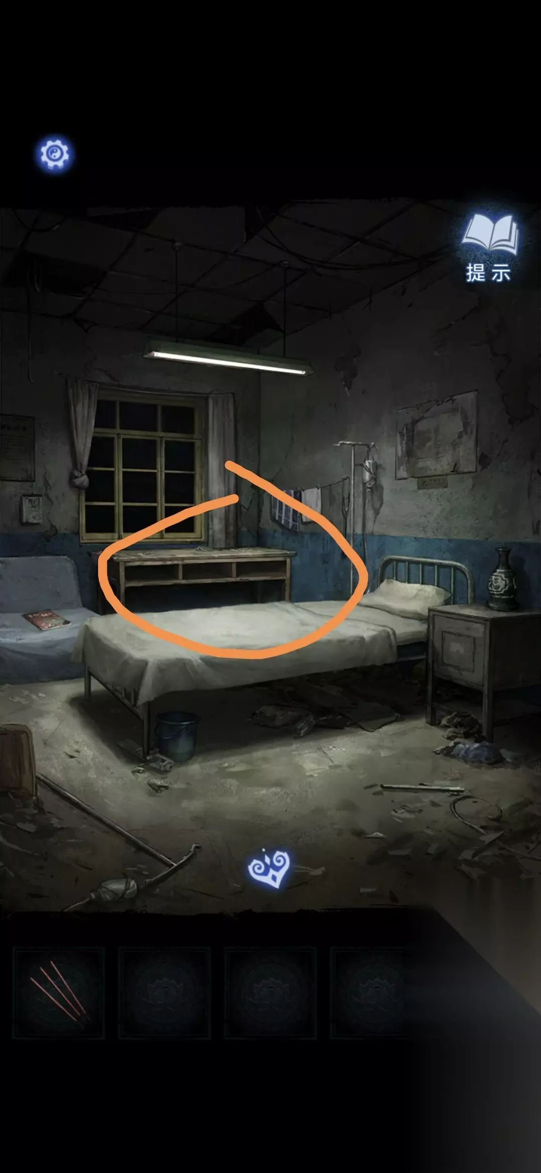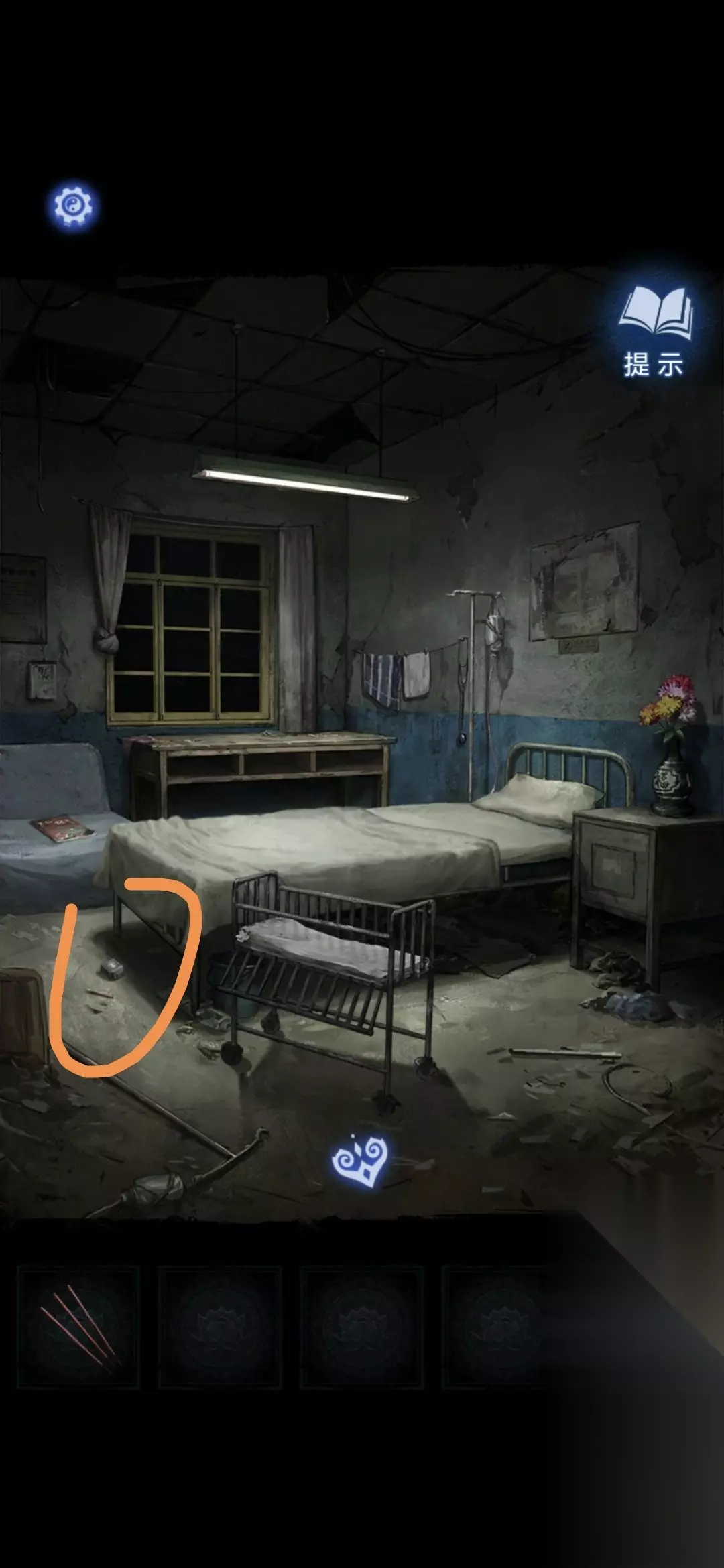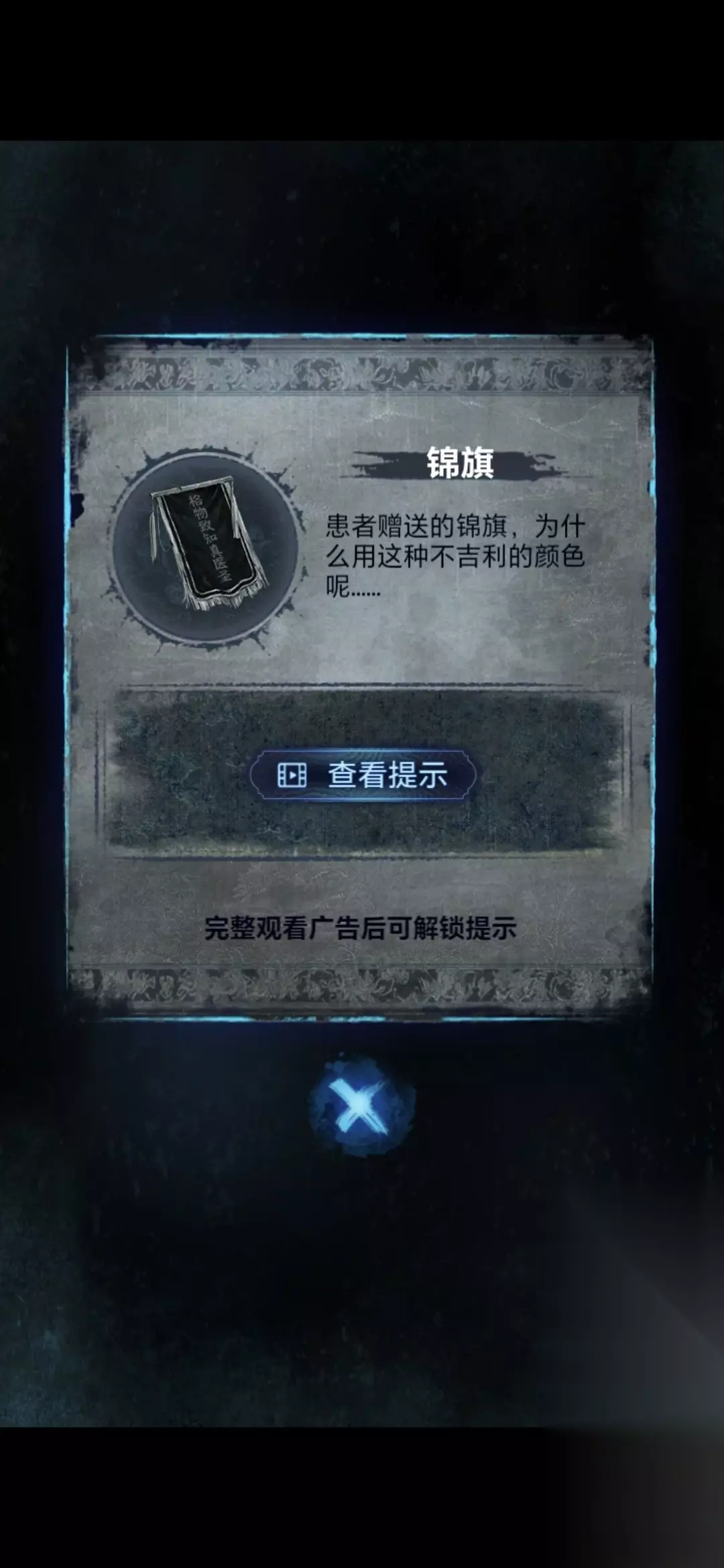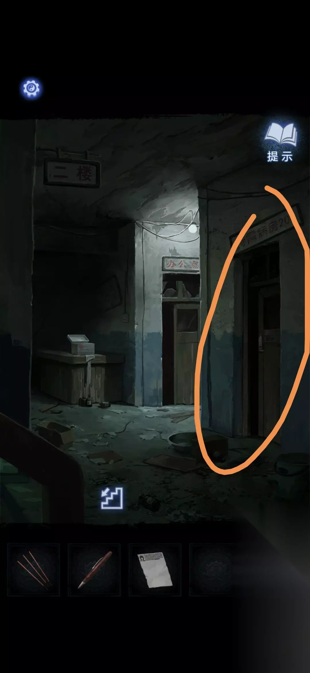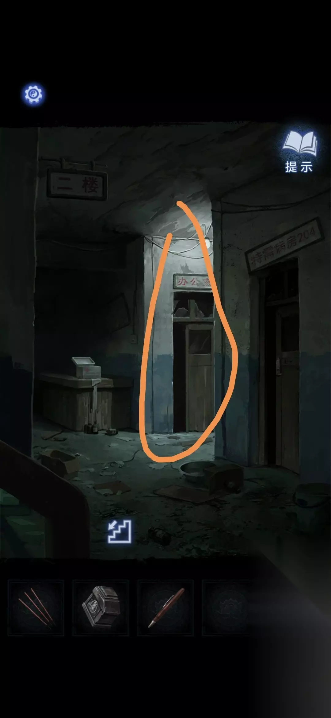 进入办公室,点击墙面,将锦旗挂在墙上,根据台灯下的资料排列锦旗顺序,打开停尸柜,获得香