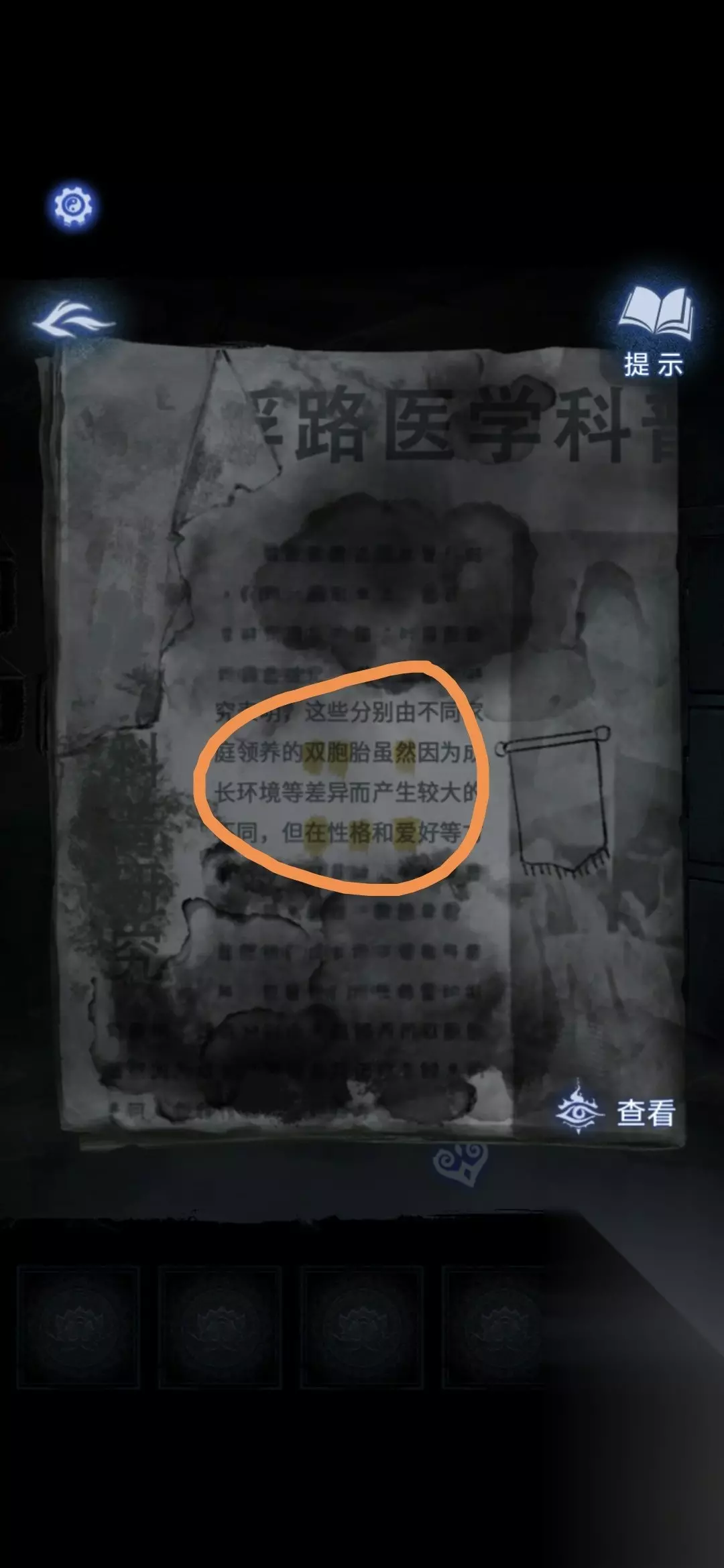 《纸嫁衣8:千子树》作为系列的第八部作品,不仅在剧情设定上更加扑朔迷离,谜题设计也更加烧脑复杂。游戏以中式志怪传说为背景,融合民俗灵异元素,营造出紧张诡异的氛围。很多玩家在探索过程中容易卡在机关解谜、线索还原、道具使用等关键环节。为了帮助大家顺利通关,本攻略将以图文结合的方式,详细讲解每一章节的通关流程与谜题破解思路,让你不错过任何关键细节,轻松体验完整剧情。 第一章夜盲 在右边椅子上点击获得凭条