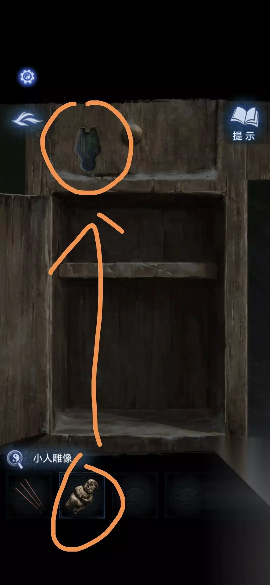 将小人雕像放在旁边房间里的柜子凹槽上,获得探头