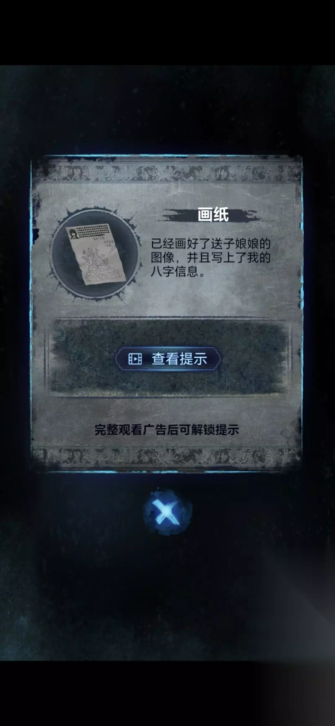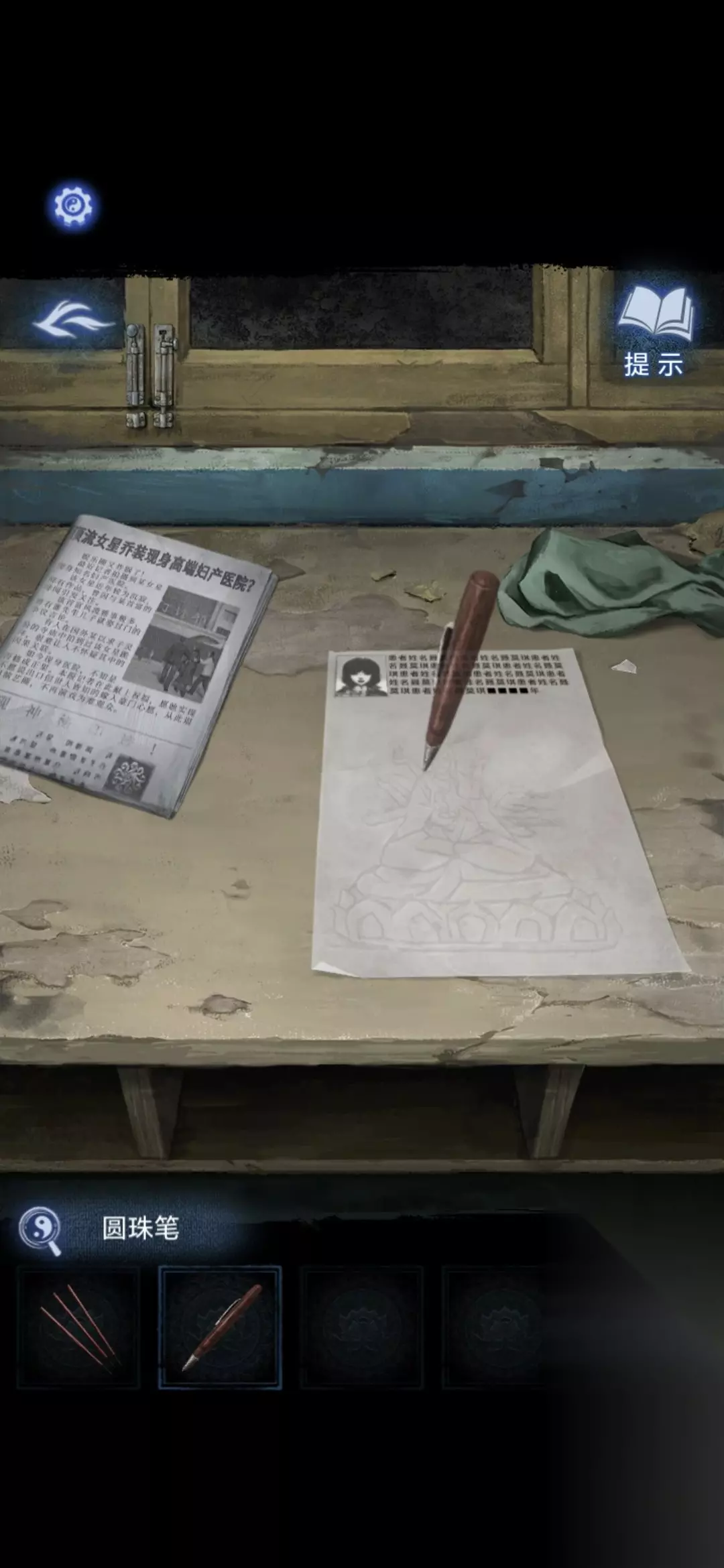 进入特需病房402,将打印报告放在桌子上,用圆珠笔拓印桌子上的神像,获得画纸