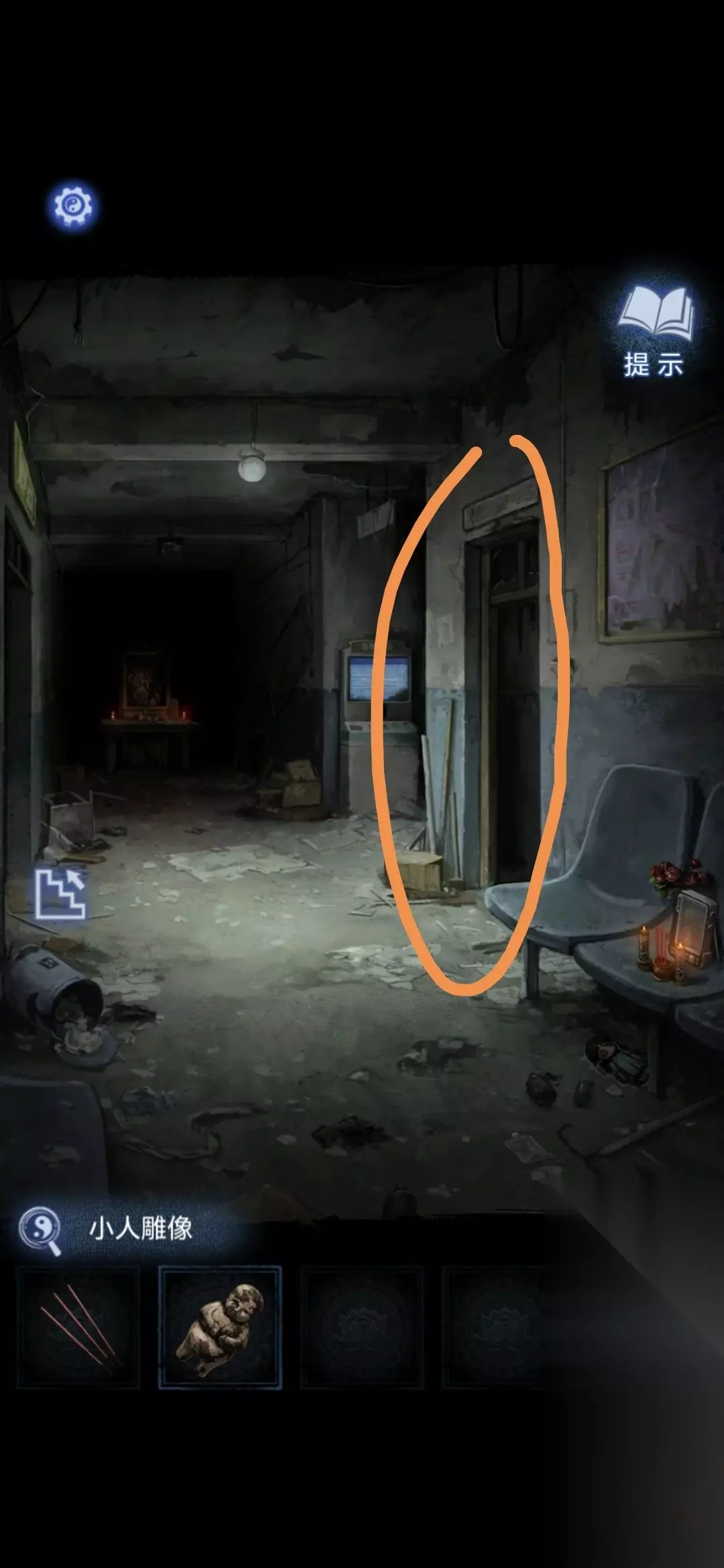 下楼,将布娃娃放在老奶奶的遗照前,获得小人雕像