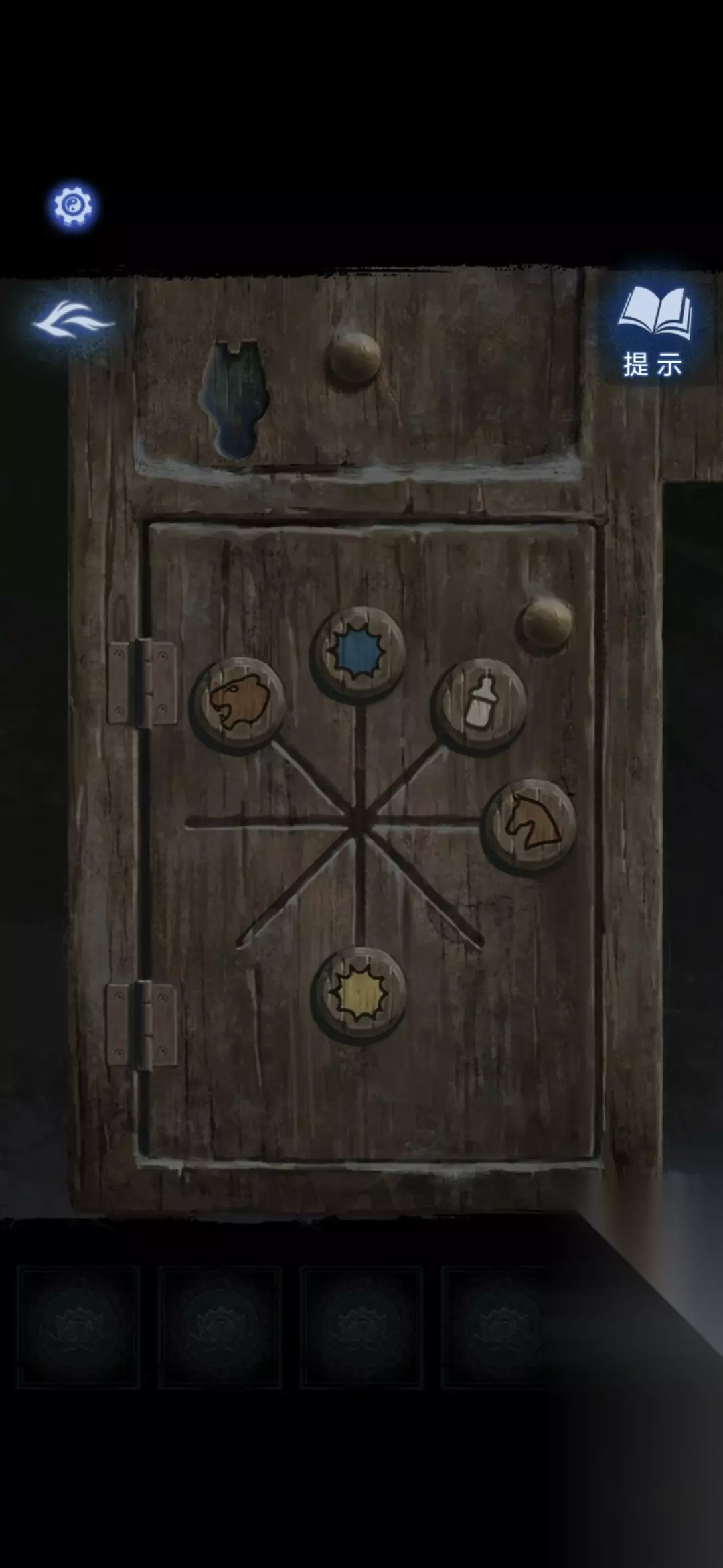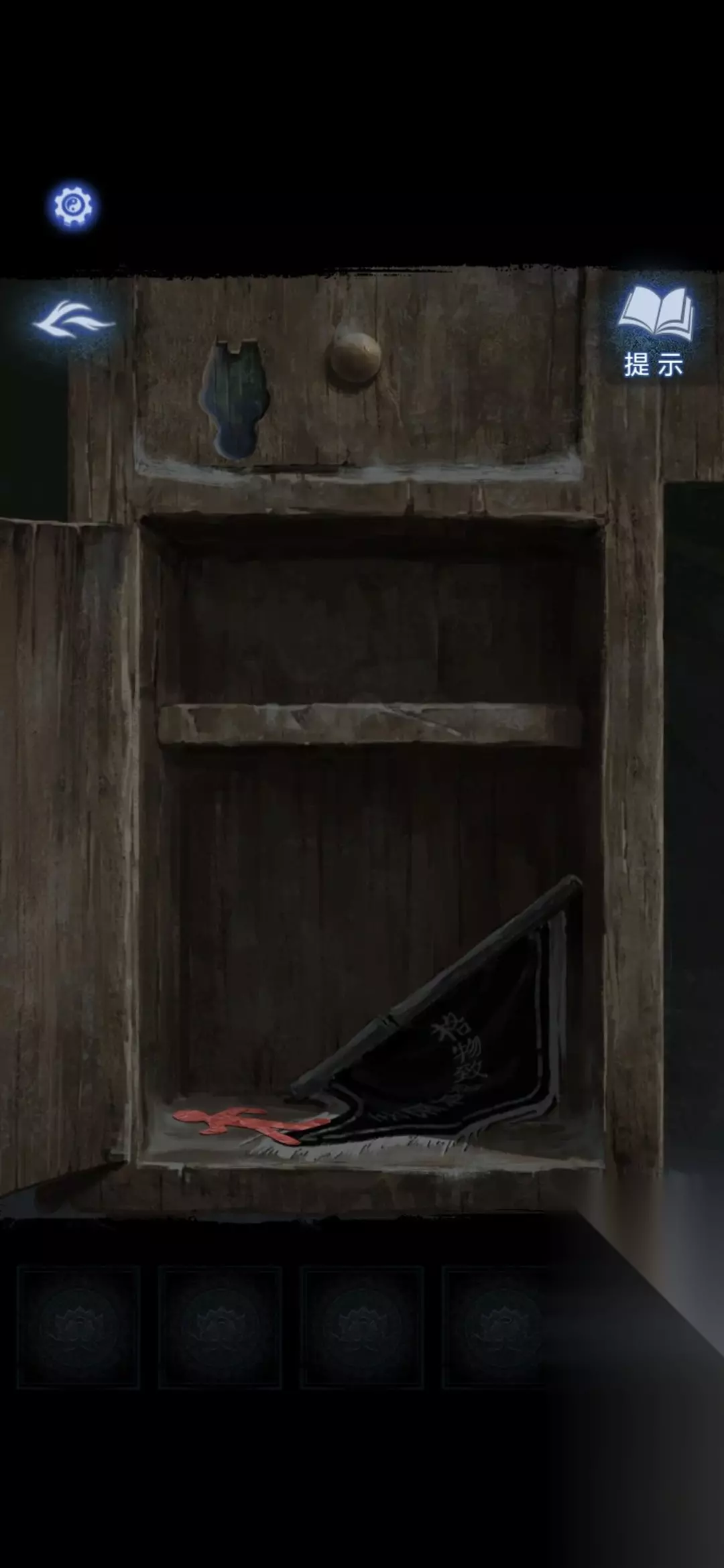 进门,根据正中央图案上小孩指的方向,可以打开柜子的锁,开锁后获得锦旗和剪纸小人
