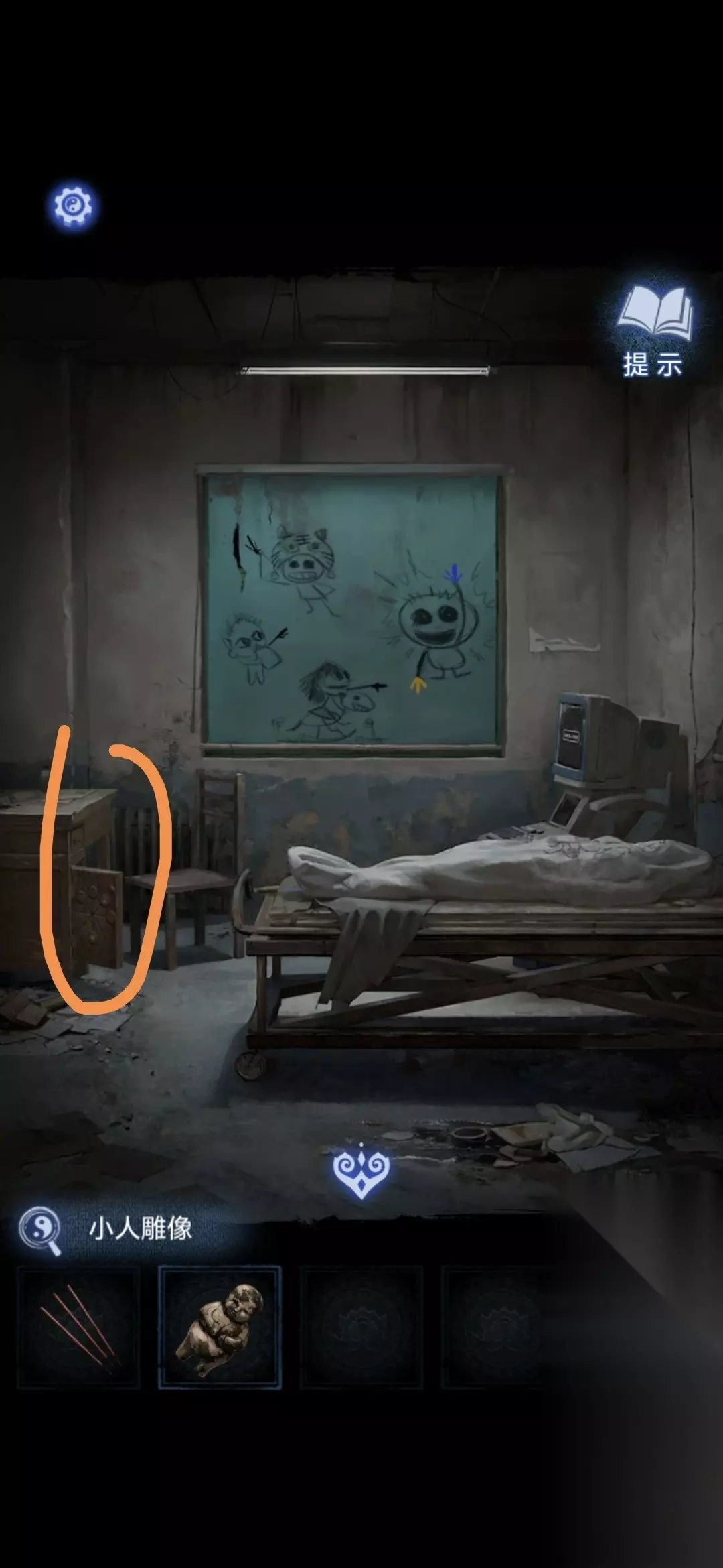 根据小孩手指的方向打开停尸柜柜门,获得布娃娃