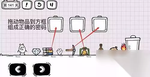 《茶叶蛋大冒险》第141关如何通关?这一关大家需要拖动物品到方框组成正确的密码,以下就是详细的图片文字详细通关策略,需要的小伙伴可以一起来了解一下。