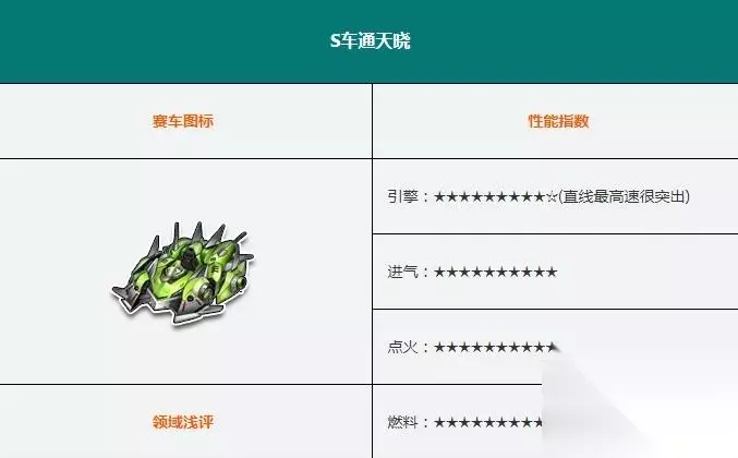 6、S车通天晓,通天晓是阿尔法的升级版。这个赛车更快、集气快,但在触感方面觉得没有特别好,是归属于速度型的S车,满身翠绿色的外表,较小的车体,觉得给人一些在风中的感受。