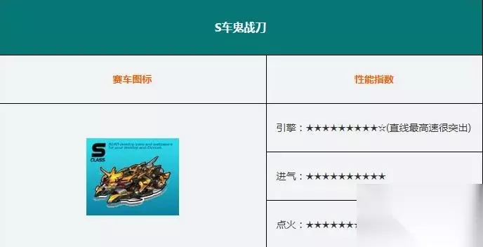 1、S车“禽兽车”鬼战刀,绝对的变态,另类的S车,2011年WCG冠军车。它是名副其实的“飞车”,9喷强悍的喷气筒,比众多S车多足足2筒,相当于A车中5喷车,速度与飘逸的完美结合,让人艳羡不已(此车没开过,但是有一次抽奖活动朋友偶然得到。讲述此赛车的性能,所以我把它拍第一位)在此要说的就是这个抽奖是有的,但是时间很短。