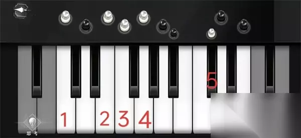 6、再点击钢琴,先点左下的思考,获得【位置与颜色】,按照顺序点击琴键。