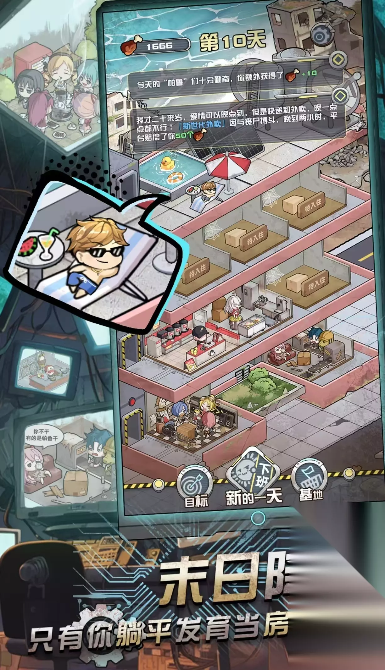《弃儿孤城》发生在科幻世界的末日时期,在集中城中有两派人物,他们之间存在着很大的冲突,作为一个挑战者需要在游戏里经过层层的冒险。玩家需要根据剧情做出很多个选择,每一个选择将引导不同的的方向,主要以文字的形式来展开游戏。会和大量的角色进行对话,拥有着6个非常独特的男主,将与每一位男主分别发生不同的故事。 高速下载 普通下载 优先233乐园APP下载 4、《末日也躺平2》