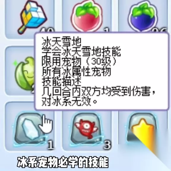 技能石冰天雪地是冰系宠物必学技能,可通过洛克挖宝获得。巨魔之眼可通过辅助刷出,为什么说他是赖皮?先手一个冰天雪地,六回合内可造成固定伤害,再加上一个九速的埋伏,埋伏后还有一个冰天雪地,同时恶魔之盾可在五回合内提升大量双防,使对手宠物对自己伤害降低,血量不足时再使用巨魔之眼交换血量。你说赖不赖皮?但赖皮仅限于对手,不适用于冰系宠物。帕尔萨斯是一只能创造奇迹的宠物,拥有神技宁神,有40%的概率强化自身全部属性。也许你认为这只宠物强不强,全靠运气。