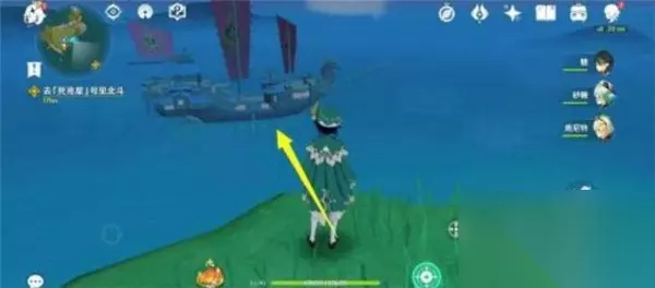 4、接着大家可以直接从山顶飞到舰队的船上; 5、具体的位置大家可以根据下图的标识来判断。
