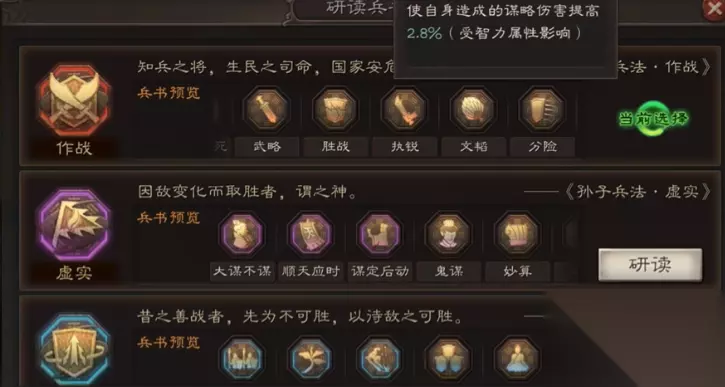攻其不备作为核心兵书之一,能显著提升对兵力较高目标的伤害,契合周瑜的群体输出定位,尤其在高频率主动战法如夺魂挟魄或风助火势的配合下,能放大属性差带来的优势;将威则增加暴击概率,进一步激发神火计的爆发潜力,在持久战中累积可观伤害;占卜提供回合外的减伤效果,增强周瑜的生存能力,防止被高爆发队伍秒杀。这种组合通过全智力加点实现输出与防御的平衡,确保周瑜在战场中持续发挥作用,而非依赖临时增益或风险较高的选项。
