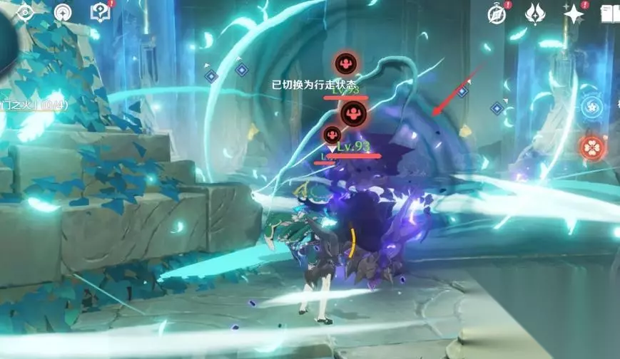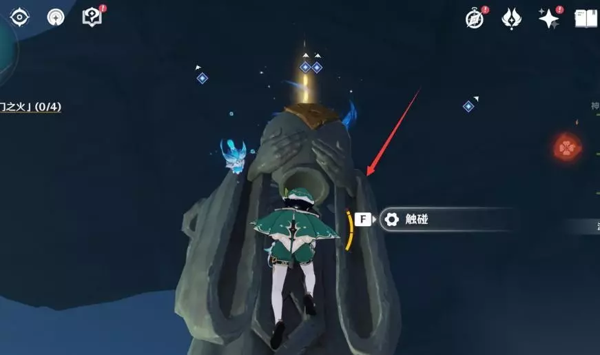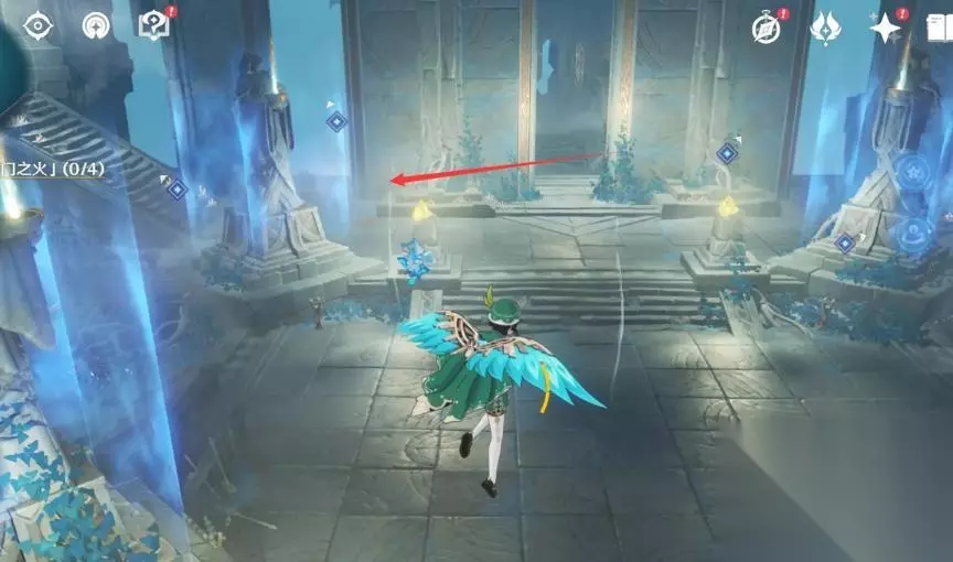 2、使用火元素角色去将4个雕塑下的火炬全部都点亮。