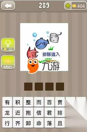 看图猜成语三条鱼排队进入答案是什么_看图猜成语之鱼贯而行,看图猜成语排队进入答案,看图猜成语三条鱼答案,看图猜成语289关答案。网上总是有玩家询问看图猜成语三条鱼排队进入答案是什么_看图猜成语之鱼贯而行,现在看图猜成语图片答案小编已经整理出来了,下面小编就为大家分享下看图猜成语所有答案吧!