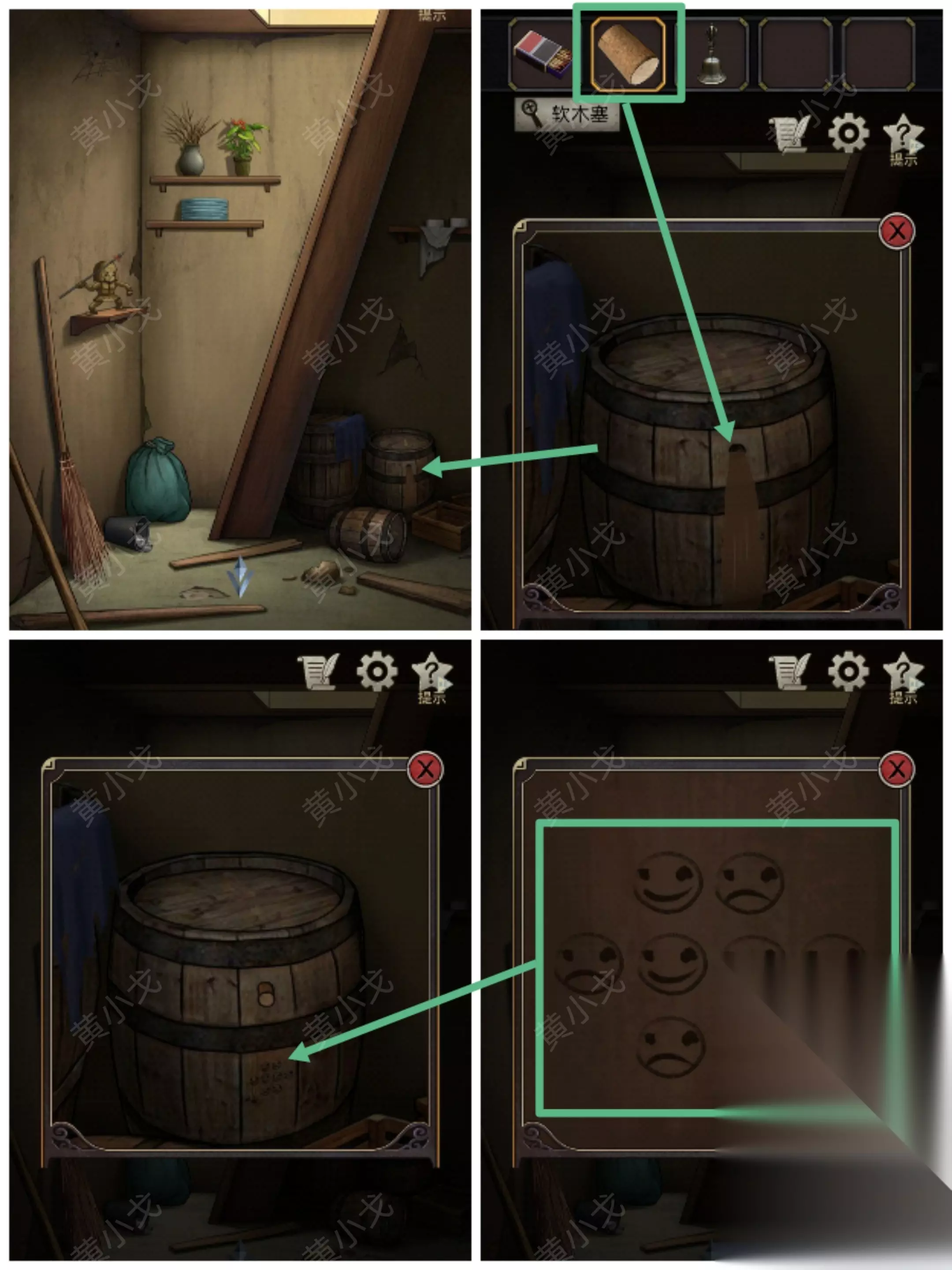 23.(地窖)点击木桶,用【软木塞】堵住洞口,注意看木桶上的图案(笑哭哭笑笑哭哭哭)