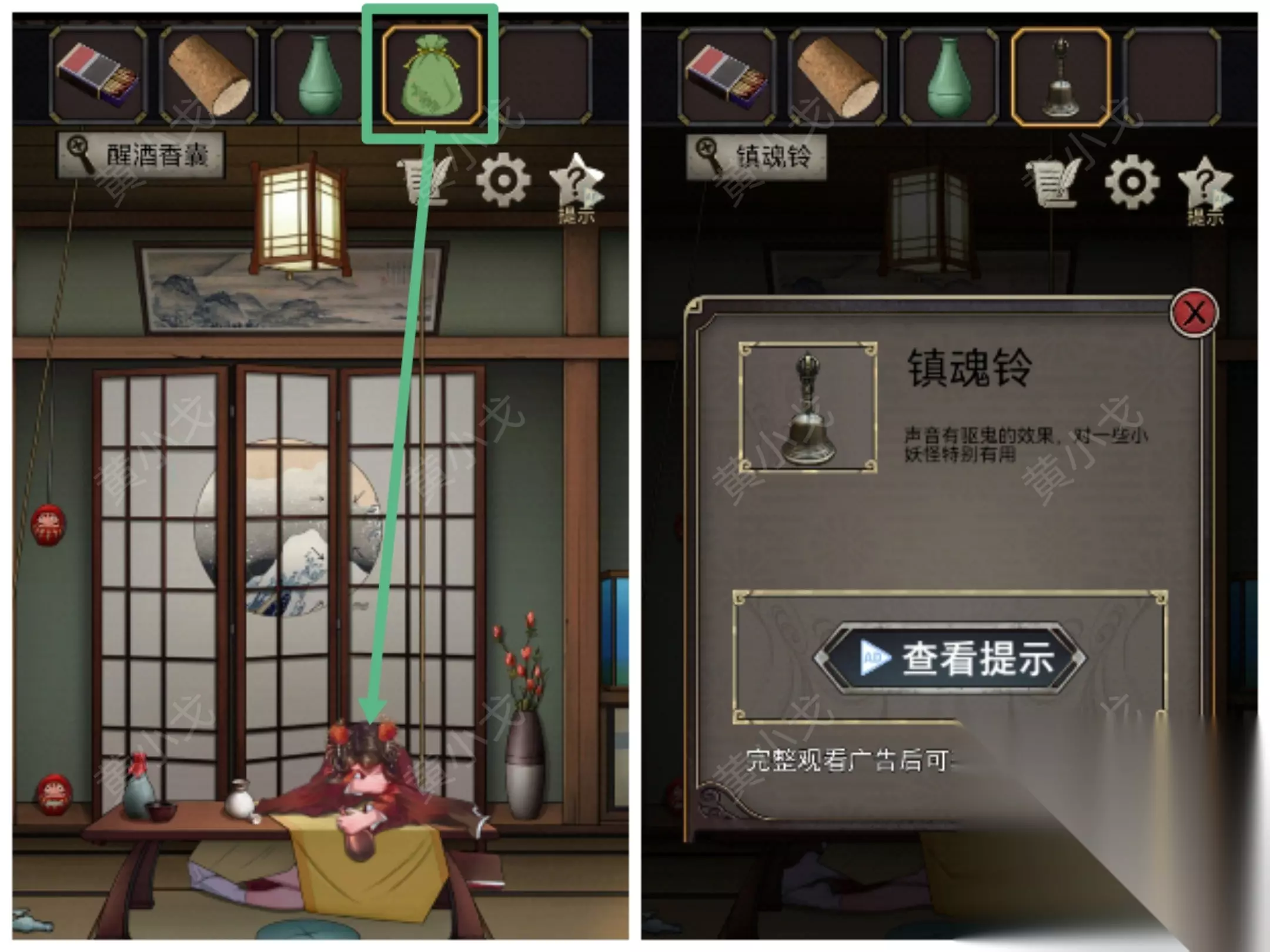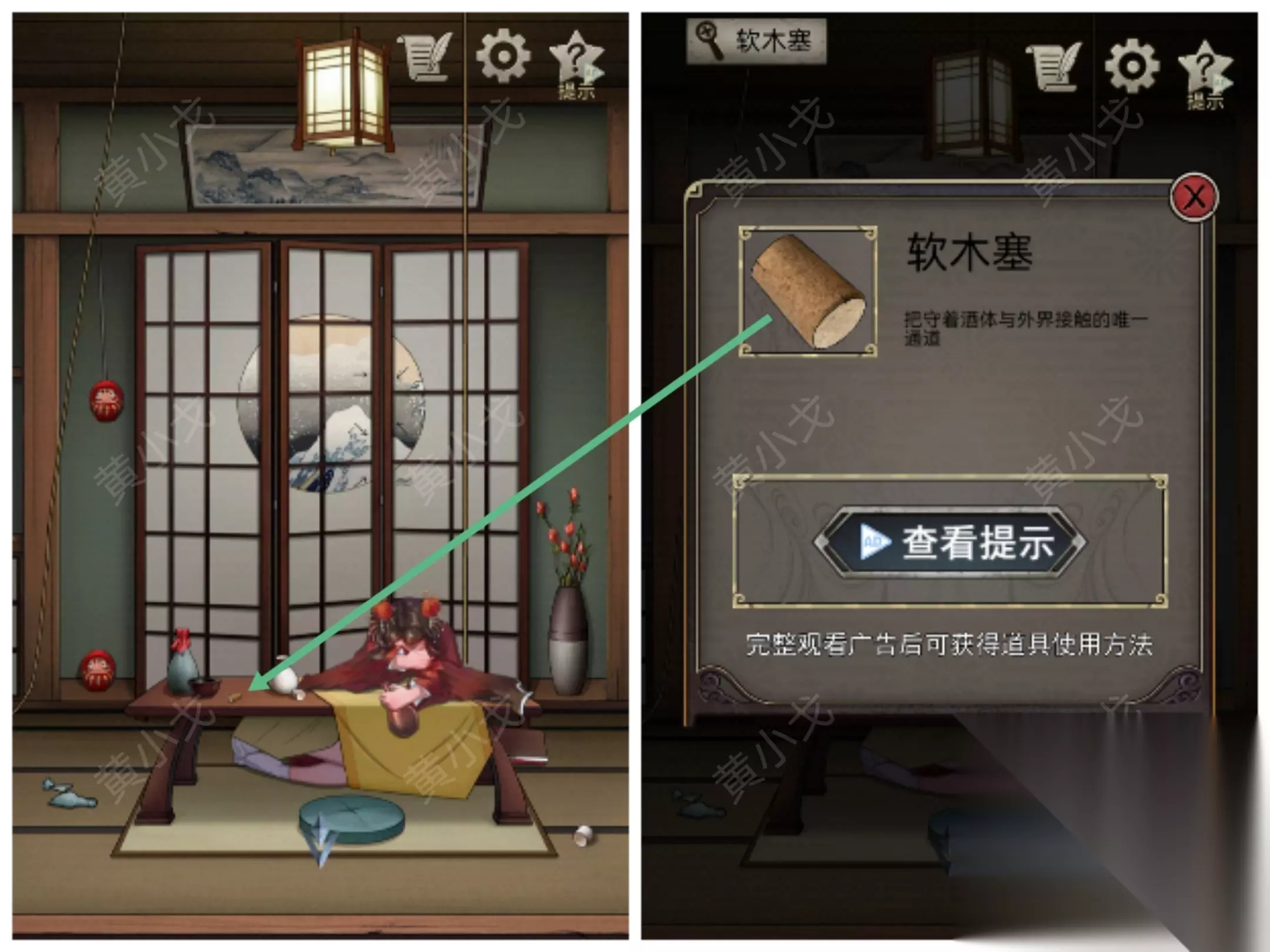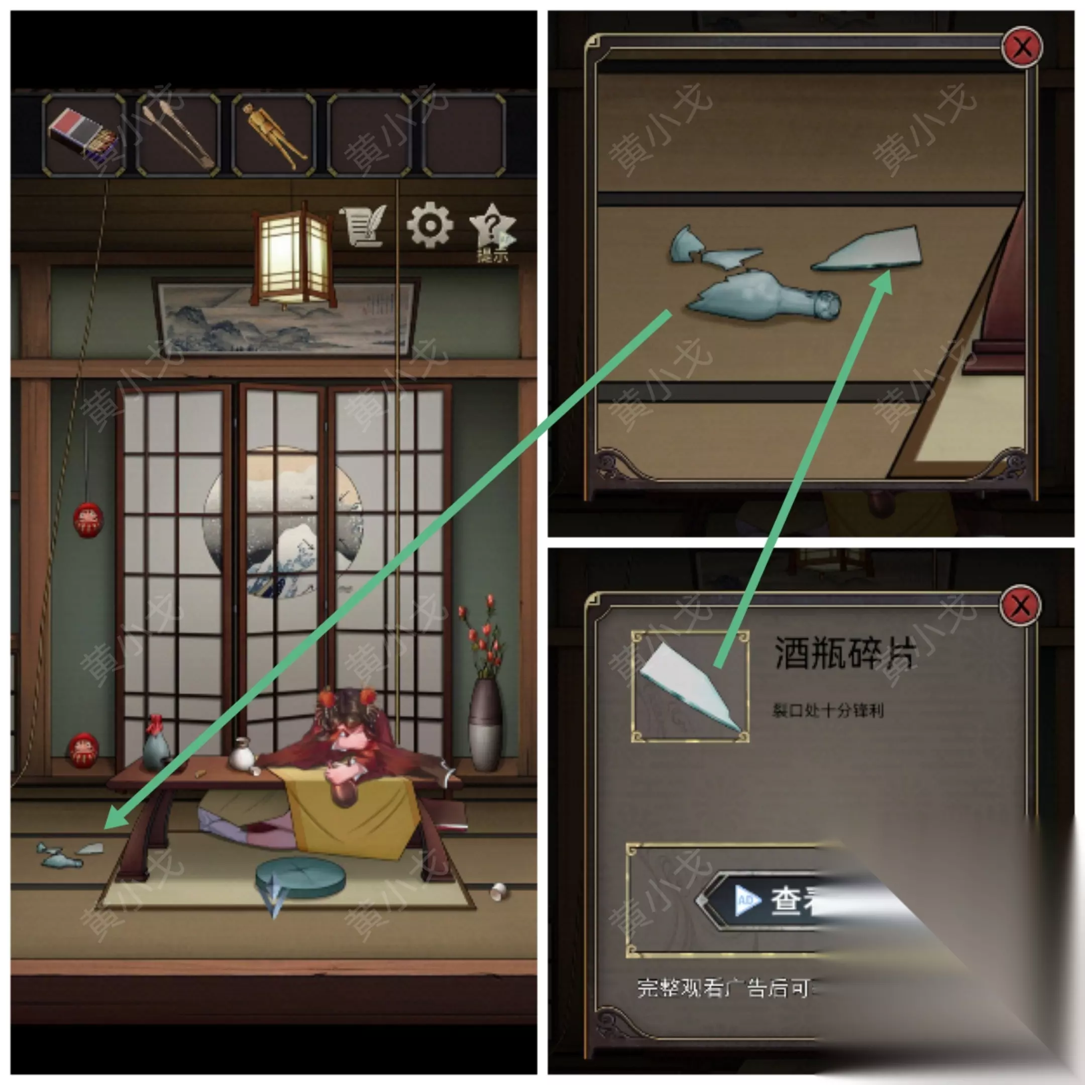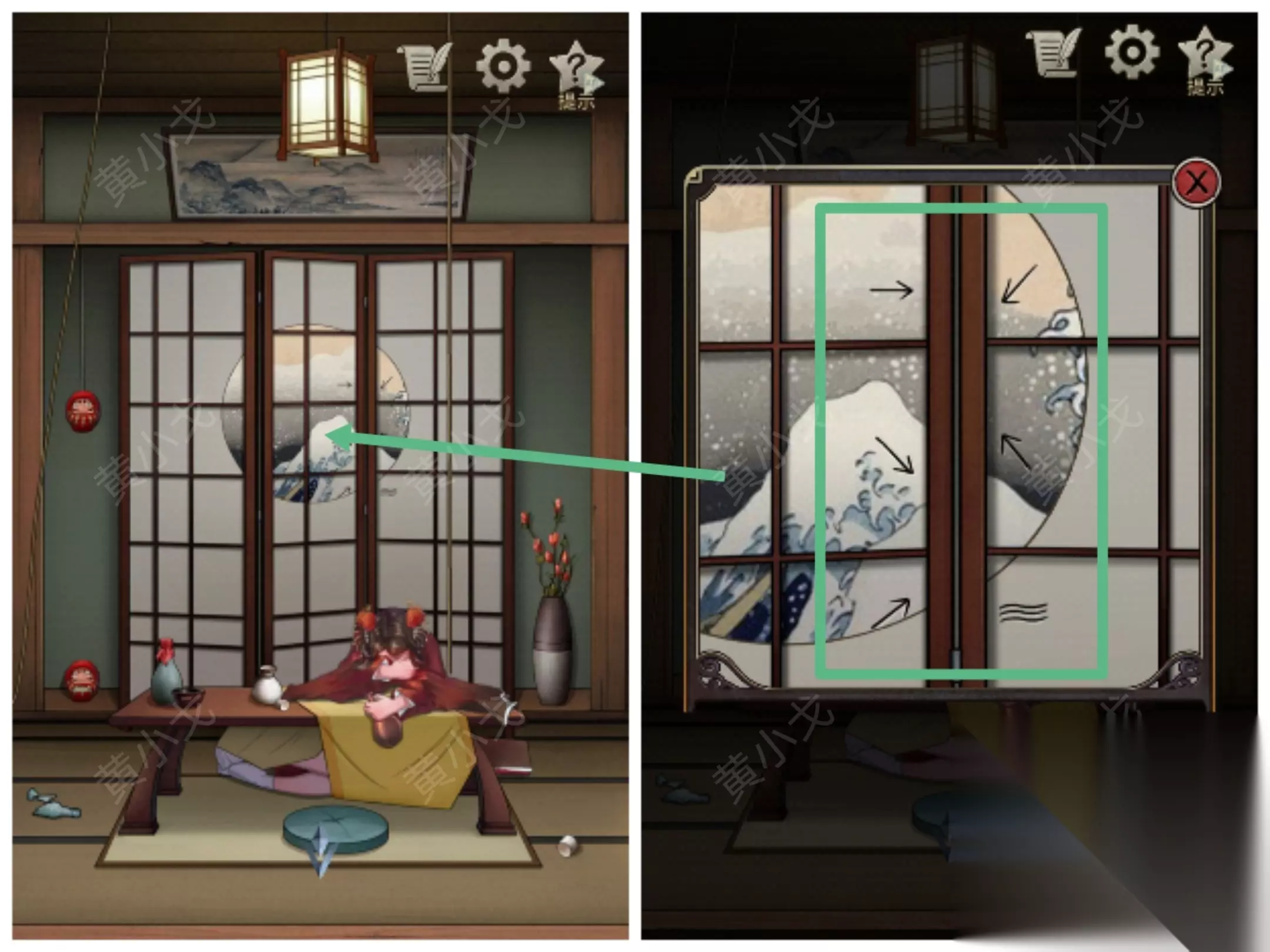 5.点击查看屏风上的图案(注意箭头顺序)