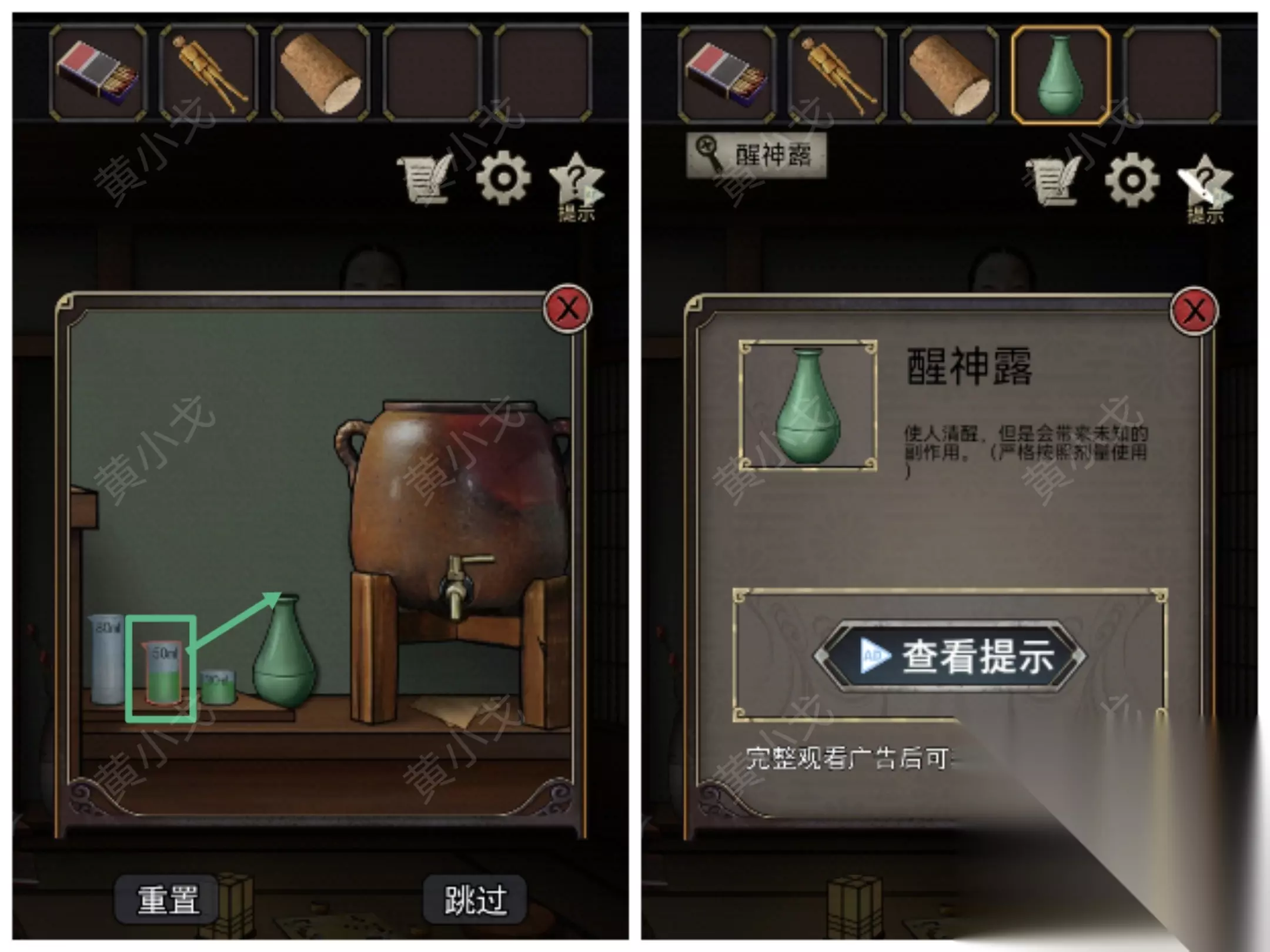 14.把配好剂量的药倒入绿色瓶子,获得【醒神露】