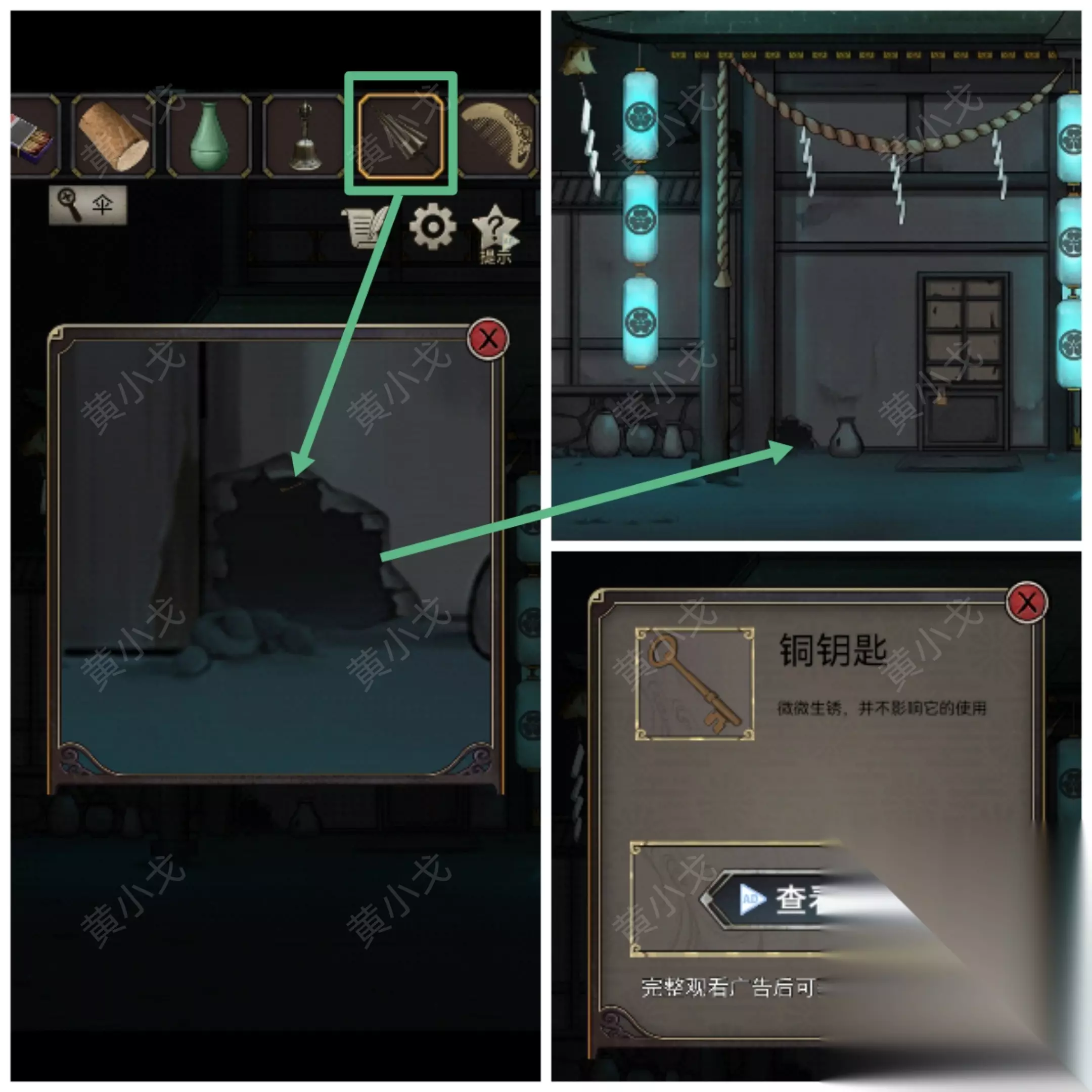 19.点击当铺老鼠洞,用【伞】钩取里面的【铜钥匙】