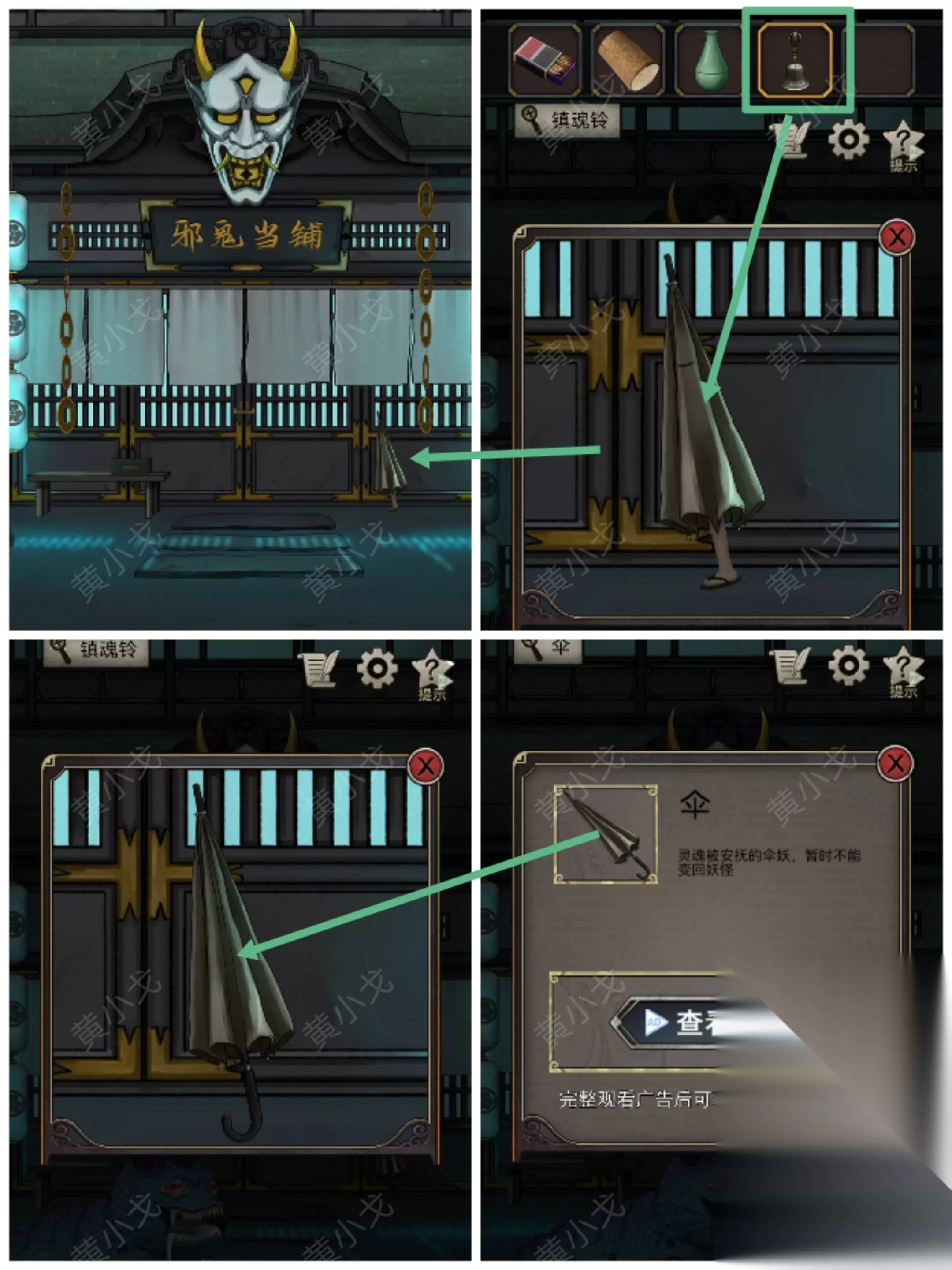 18.(鬼市街角)点击当铺门前的伞妖,使用【镇魂铃】,获得【伞】