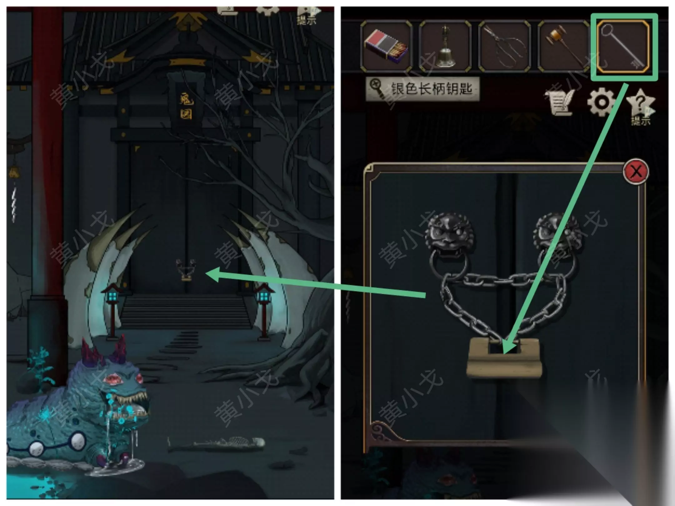 31.点击鬼园门上的锁,用【银色长柄钥匙】打开