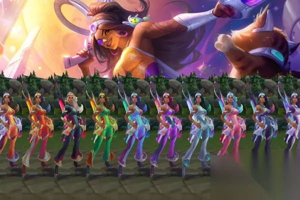 3、点击英雄头像下面的圆形按钮就可以看到炫彩皮肤。 4、选中皮肤就可以之间使用,进入加载界面就可以看到外观变成炫彩皮肤。 5、玩家可以直接在商城中充值点券购买炫彩皮肤礼包。