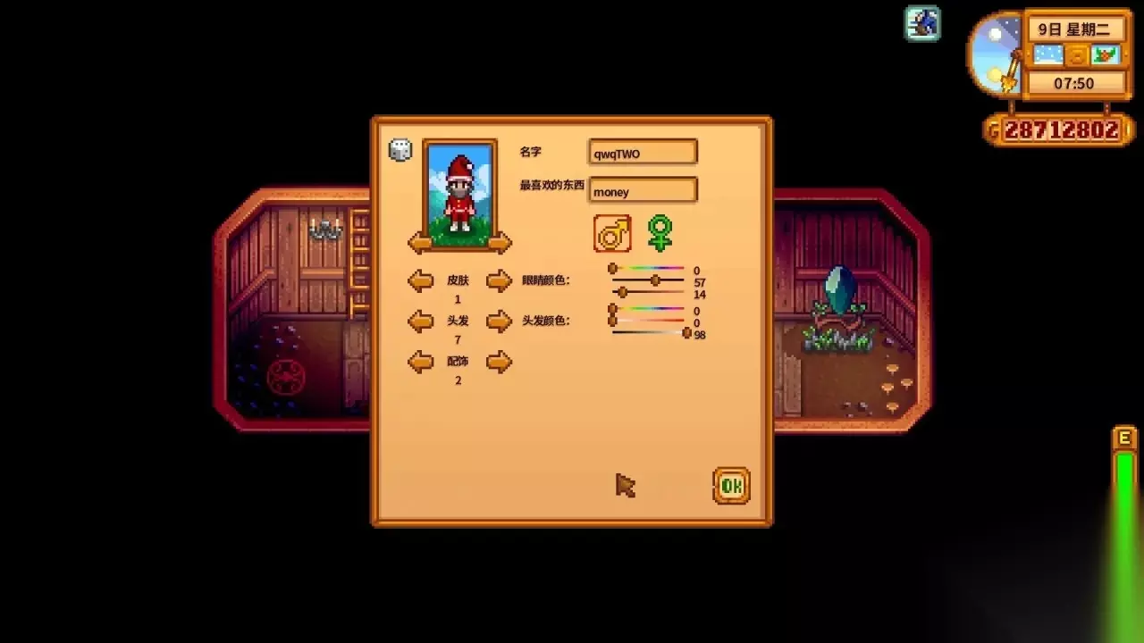 10.可爱套装 皮肤:24 头发:34 头发颜色:16/54/97 眼睛颜色:33/82/48 猫耳:解锁与8个人好感度十星成就后,去老鼠帽子商店购买 上衣:布料➕奶酪(山羊奶酪不行) 短裙:布料➕蓝爵/郁金香(需染色,染料颜色:5/13/70) 冻土靴:矿井50层宝箱获得,之后可在探险家公会购买
