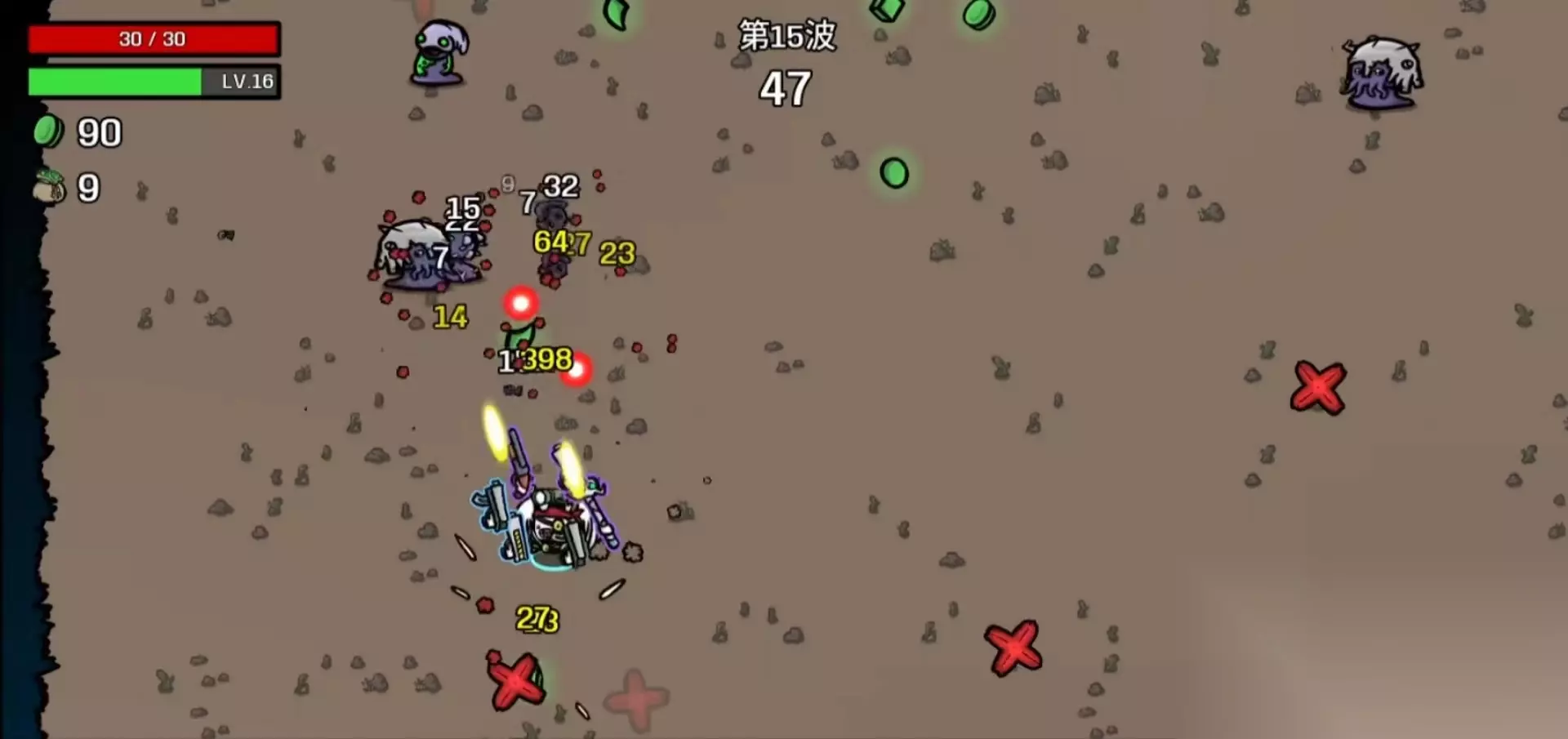 其次实战中键回血道具的几率也会提升,一般打树就会掉落回血。还有一点玩家最喜欢游戏中的高级武器,而商店出高级武器的概率,同玩家的幸运点数也是成正比的,同时和玩家的游戏回合数也有一定关系。如果玩家只想刷高级武器,一般20点的幸运就足够了。 不过玩家需要注意游戏中只能携带一把武器,虽然高级武器的刷新概率大大提高,但是依然有出低级武器的情况,如果此时自身的生存和输出属性不达标就很难打。这也是虽然高级武器提升巨大,但依然不建议玩家先点幸运的原因之一。 当然在后期战斗难度非常大,如果刷不出高级武器,过关将是异常艰难,这也说明在游戏后期,点幸运是非常必要的。