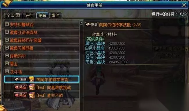 接下来说一下偷学技能任务的具体步骤 第一步,首先,你需要打开任务栏,选择“使命”,然后进入“决斗场”。在那里,你会找到偷学任务。首个任务是提升到青铜2级,这个任务通过参与匹配对战可以轻松完成。然而,如果你不擅长PK,或者一直在输,或者没有耐心去逐步提升等级,你可以选择双开游戏。在传统决斗场,让你的小号保持静止,然后用你的主号不断攻击。这样,你可以在十分钟内完成任务。