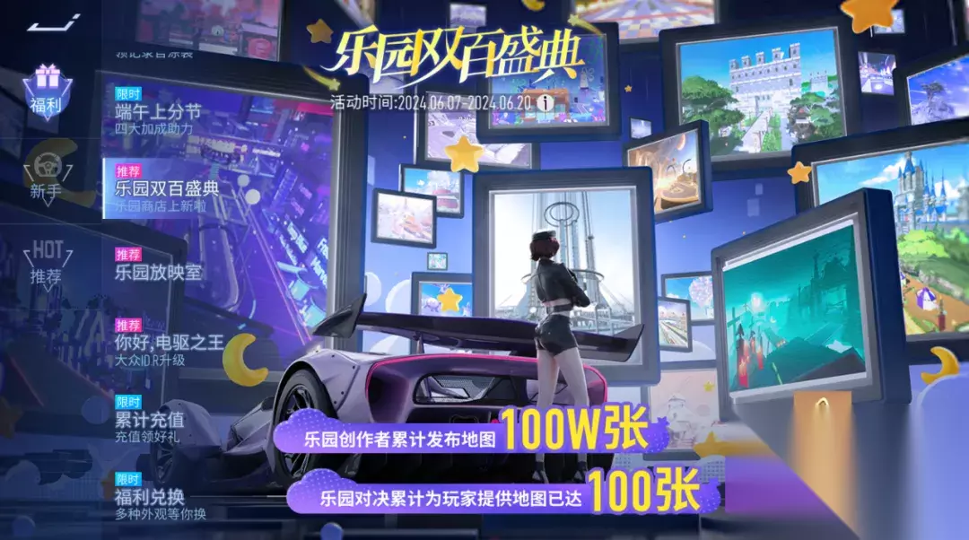 三、乐园双百盛典 双百盛典,乐趣无穷!截至今日,乐园创作者累计发布地图已达100万张!乐园对决累计已提供100张高质量地图!分享还可获得乐园之星*100!