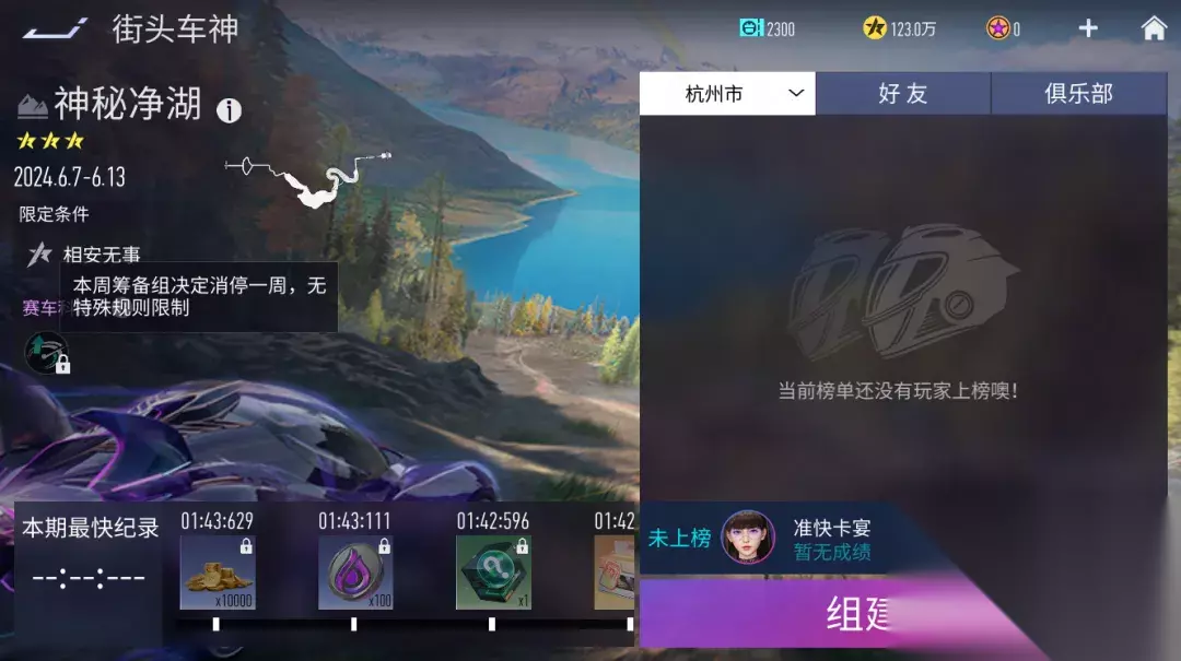 街头车神 街头车神『红牛极限工厂』将于2024年6月6日23:59结束, 街头车神『神秘净湖』将于2024年6月7日8:00开启,本期街头车神无规则限制。