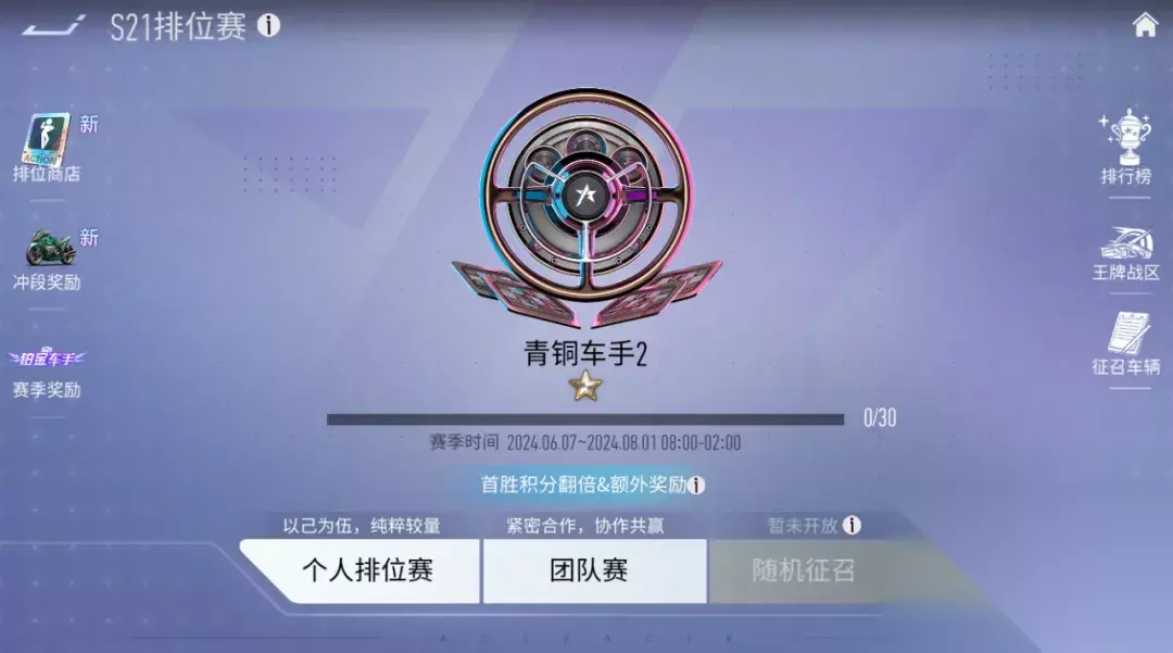 排位赛将迎来新的赛季! 赛季主题:仰望星河 赛季时间:2024年6月7日到2024年8月1日 新的赛季我们对段位名称做了调整,段位名称将会更通俗易懂。(详情见游戏内)