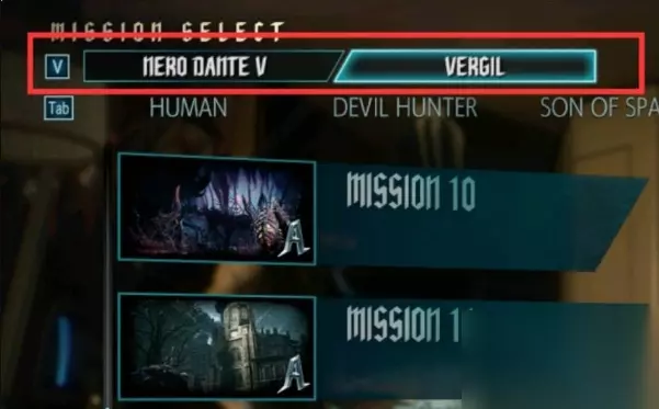 7、当然,维吉尔也可以用于其他模式中进行游戏,读取存档之后在选图之前按V键切换角色即可。