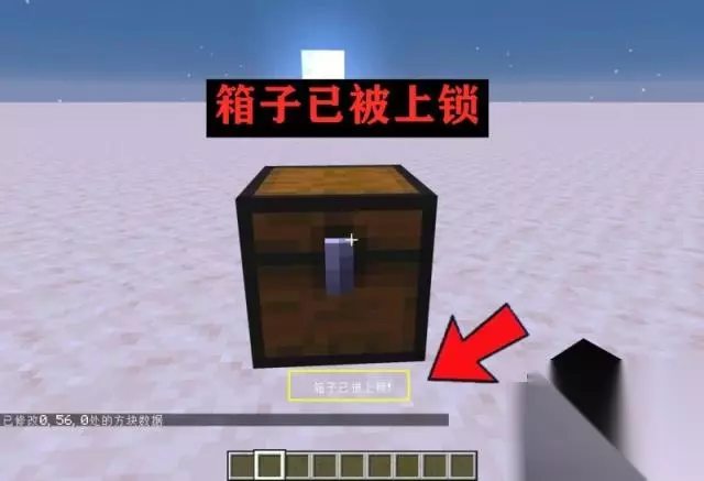 此前我们介绍过mc的NBT标签,它就好比是一个人的性格。通过不同的标签来赋予人与众不同的特点。《我的世界》中的箱子便是如此,在箱子的NBT标签中暗藏了一个名为“Lock”的标签,它便可控制箱子是否上锁。 ①指令:/data merge block X Y Z {Lock:”密码”},这是箱子上锁的标准指令。(X/Y/Z)代表了箱子所在位置的坐标,“密码”则可以任意设定。 ②举例:/data merge block 0 56 0 {Lock:”我叫Minecraft”},意味着我们将坐标为(0,56,0)位置的箱子,以“我叫Minecraft”为密码进行上锁。上锁后的箱子将无法再被任何人打开,包括玩家自己。