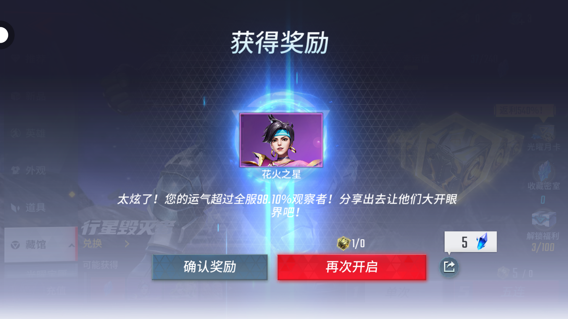 单发抽到的皮肤,但我没有这个英雄😭