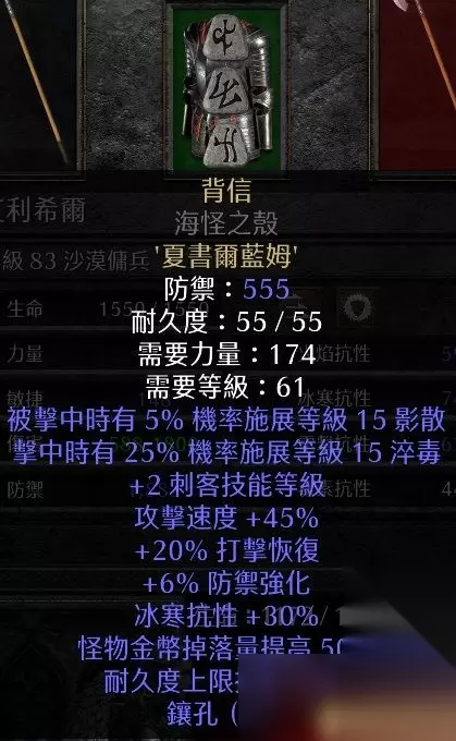 评价解析:防御向头盔,价格便宜还有ek。施法类职业使用魔影斗篷还可以防危险的远程敌人。不过总体使用面很窄,只适合追求防御的角色,例如翻箱子跑路的。 «12345678910»友情提示:支持键盘左右键"←""→"翻页 2、钢铁 最低使用等级:13 底材:2孔剑/斧/钉头槌 镶嵌顺序:3+1(Tir+El) +20%伤害 +3最小伤害 +3最大伤害 +50攻击准确率 50%概率造成开放伤口 25%提升攻击速度 每杀一个敌人+2法力 +1照亮范围