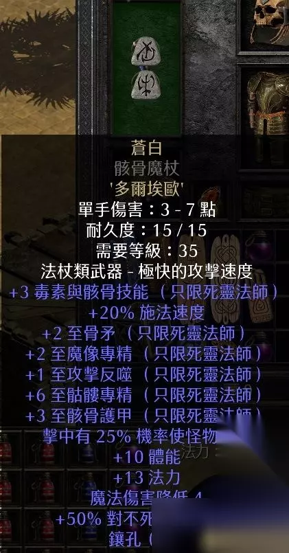 评价解析:属性非常实用,施法系可以早早做出来,用上很久。有条件用轻型铠甲和法师铠甲的底材,开荒期随意轻甲做出来先用着。 «12345678910»友情提示:支持键盘左右键"←""→"翻页 5、叶子 最低使用等级:19 底材:2孔法杖 镶嵌顺序:3+8(Tir+Ral) +5-30火焰伤害 +3级火焰技能 +3级火焰弹(女巫适用) +3级炼狱之火(女巫适用) +3级暖流(女巫适用) 每杀一个敌人+2法力 冰寒抗性+33% +2-198防御(在角色级别基础上)