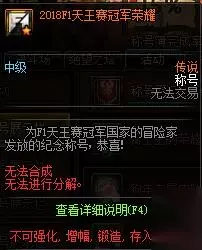 DNF在11月15日将会推出F1天王赛纪念活动,这一次活动奖励很多,除了诸多材料外,还有机会获得2018F1天王赛冠军荣耀称号,那么该称号有属性吗?获得方式是什么?下面就为大家带来DNF2018F1天王赛冠军荣耀称号介绍。