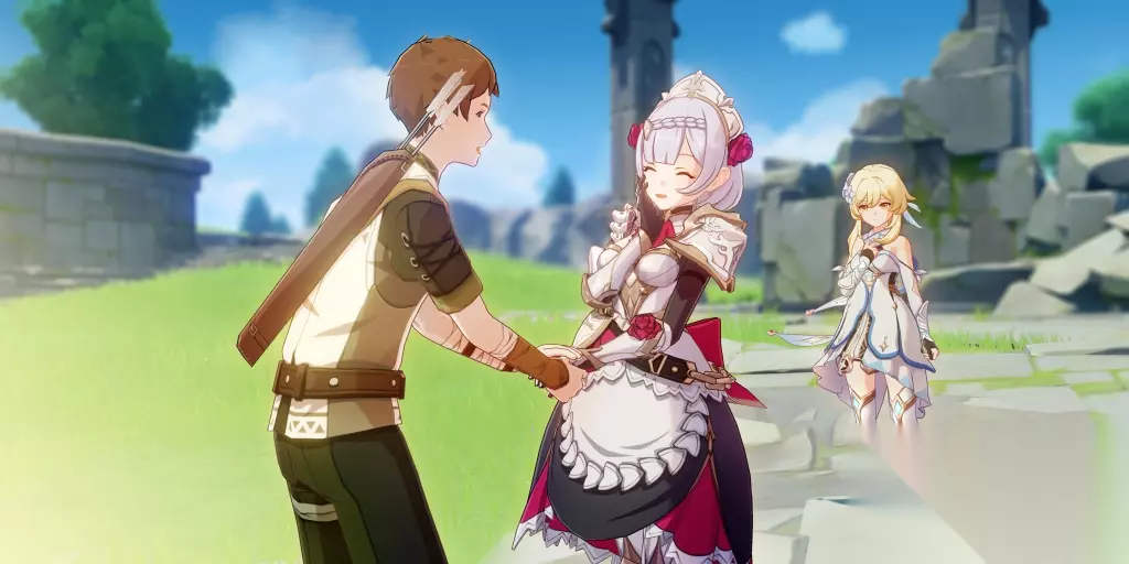女仆,屹立于大地之上 5.第五结局:遇冷的盛情 旅行者在和诺艾尔对话时,选择女仆相关对话,对话完成以后,和诺艾尔一起走回蒙德城,会在桥头遇到阿瓦洛,前去路口击败史莱姆,寻找(其实没有失物)击败史莱姆后回到诺艾尔身边,前往蒙德,和诺艾尔阿瓦洛一起前去:天使的馈赠、猎鹿人、荣光之风。对话时选择这是特意为你准备的,随后旅行者送阿瓦洛先生出城,阿瓦洛败露,回城门安慰诺艾尔,任务结束,第五结局达成。
