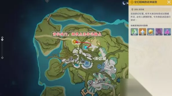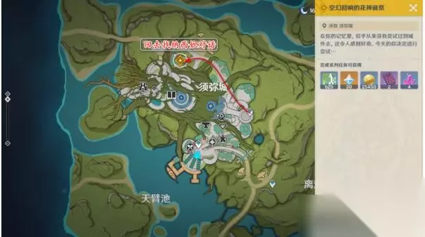 原神千朵玫瑰带来的黎明攻略 原神空幻回想的花神诞祭攻略 1、我们接到任务之后,先传送到须弥城门处。