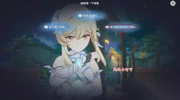 3、经过一段的剧情后,我们选择昨天我们所在的空间这个选项。