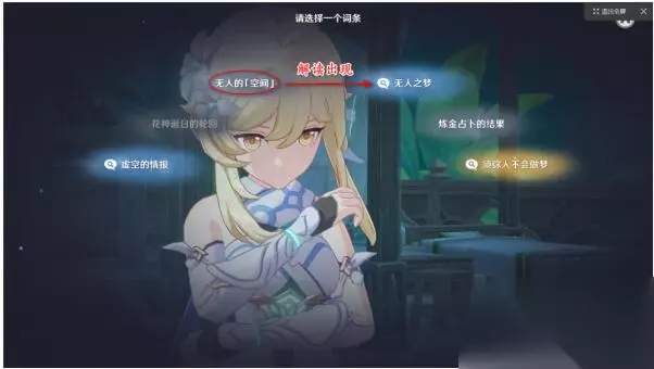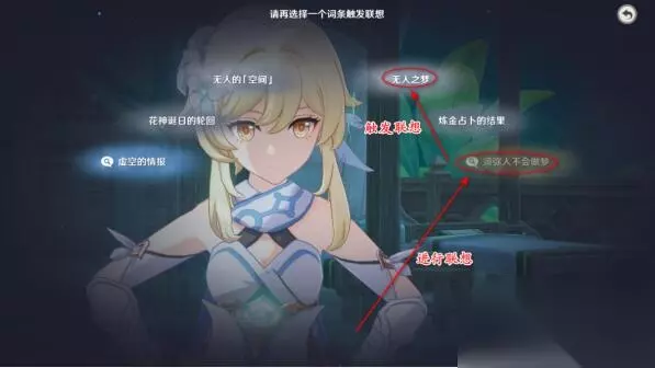 9、联想须弥人不会做梦这个选项,接着会触发无人之梦这个联想。