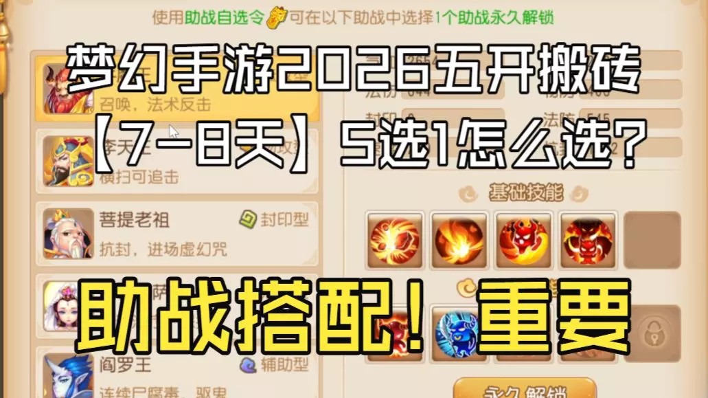 助战开启推荐:大圣、西海、惠岸、老鼠、白龙、婆婆、铁扇、白无常;助战搭配方案:单人日常任务推荐[大圣+西海+白龙+铁扇],后期[大圣+婆婆+老鼠+惠岸]。 助战…