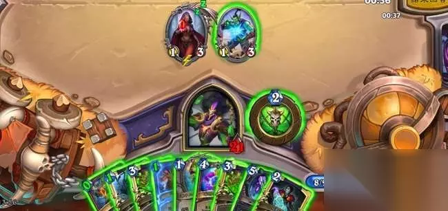 《4》环境唯一OTK水雷术卡组要点 ①斩杀手段:5费挂刀,然后给关键牌减费 关键牌为:罗姆、咒术瓶、召唤小鬼、亵渎 图中的组件已经凑齐28*4=112血斩杀。(提前上女王选戒指) 但是目前只有9费,第二把刀还没上并且减费,只能打出6*4*2一共是48血斩杀。 (需要在启动前死掉一个友方的水雷) 启动顺序为:1费罗姆-3费召4鬼-4费咒术瓶发现水雷-0费咒术瓶发现水雷-1费亵渎-0费亵渎