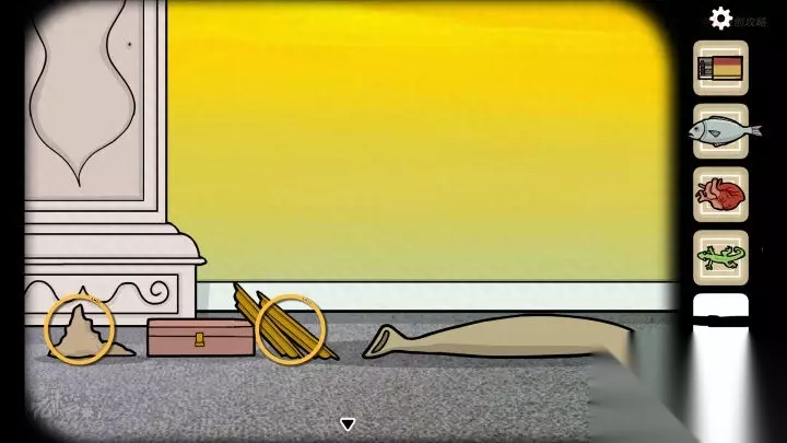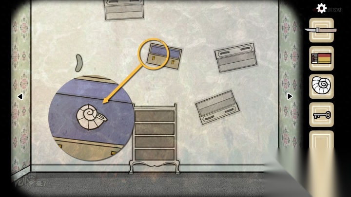 壁虎-落地钟视角:拖拽左侧的壁画,可以看到壁画一角脱落,点击卷起,可以拾取【弹珠】